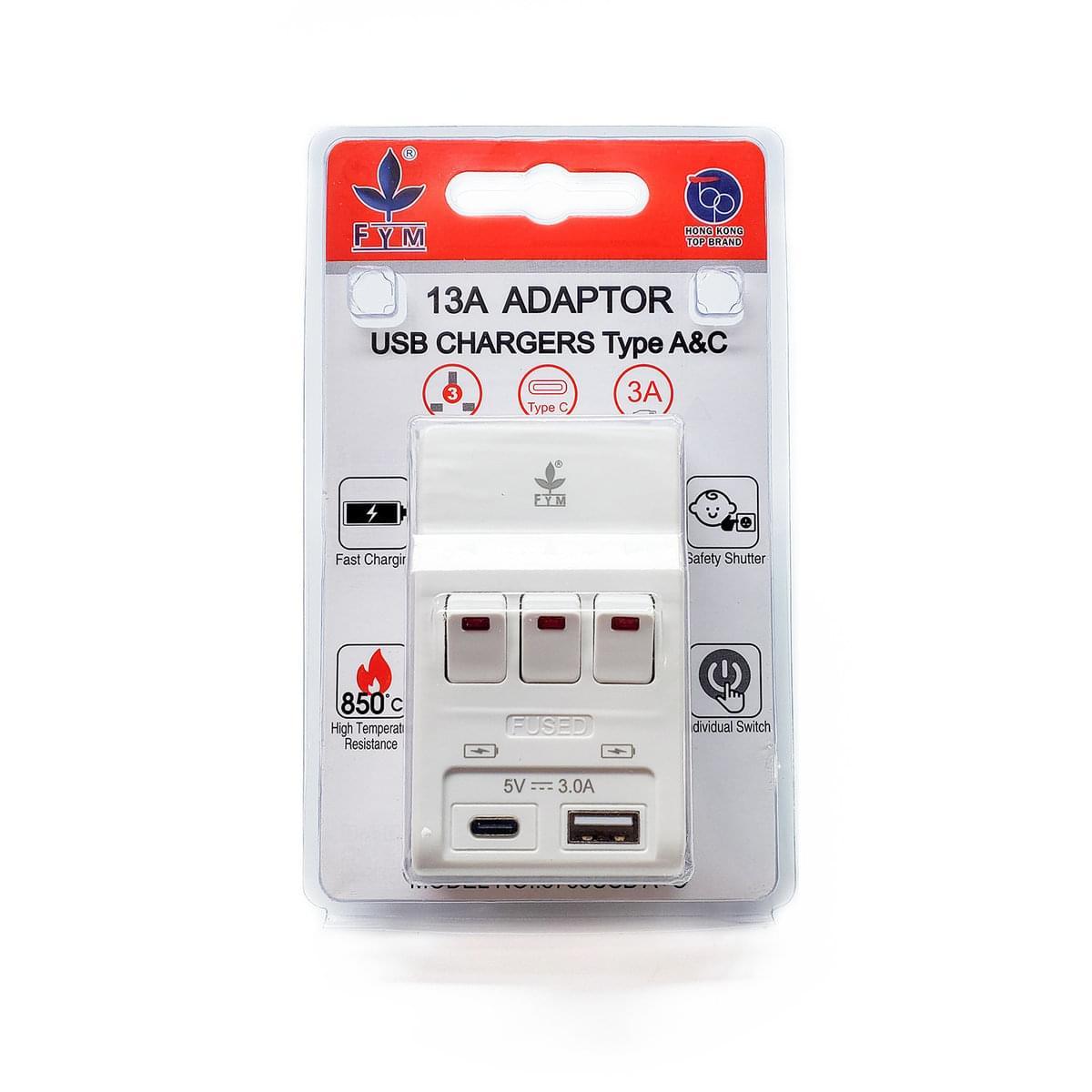 3位13A獨立開關+2USB Type-A+C萬能多孔插座
