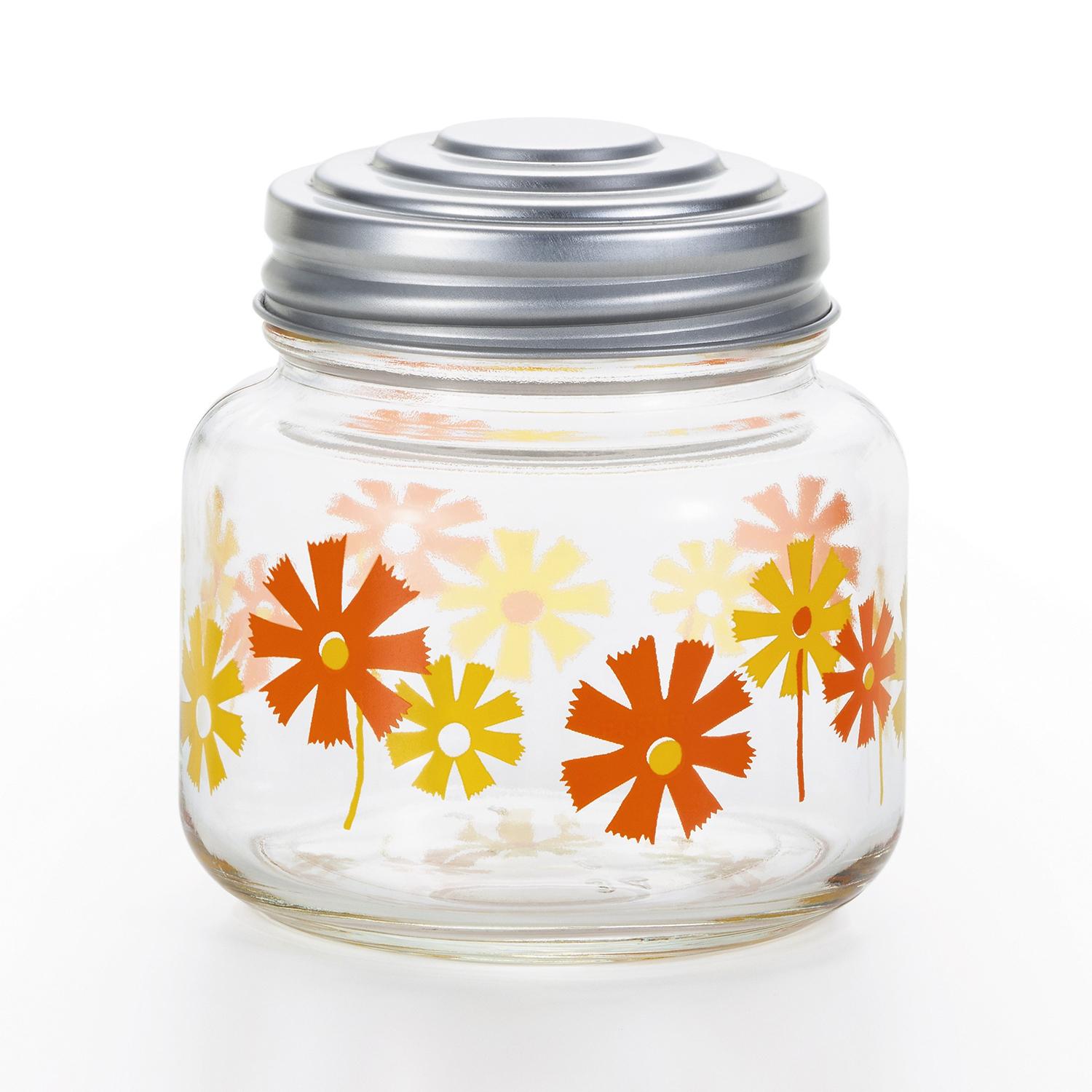 名稱:日本375ml 昭和印花玻璃罐(橘菊)