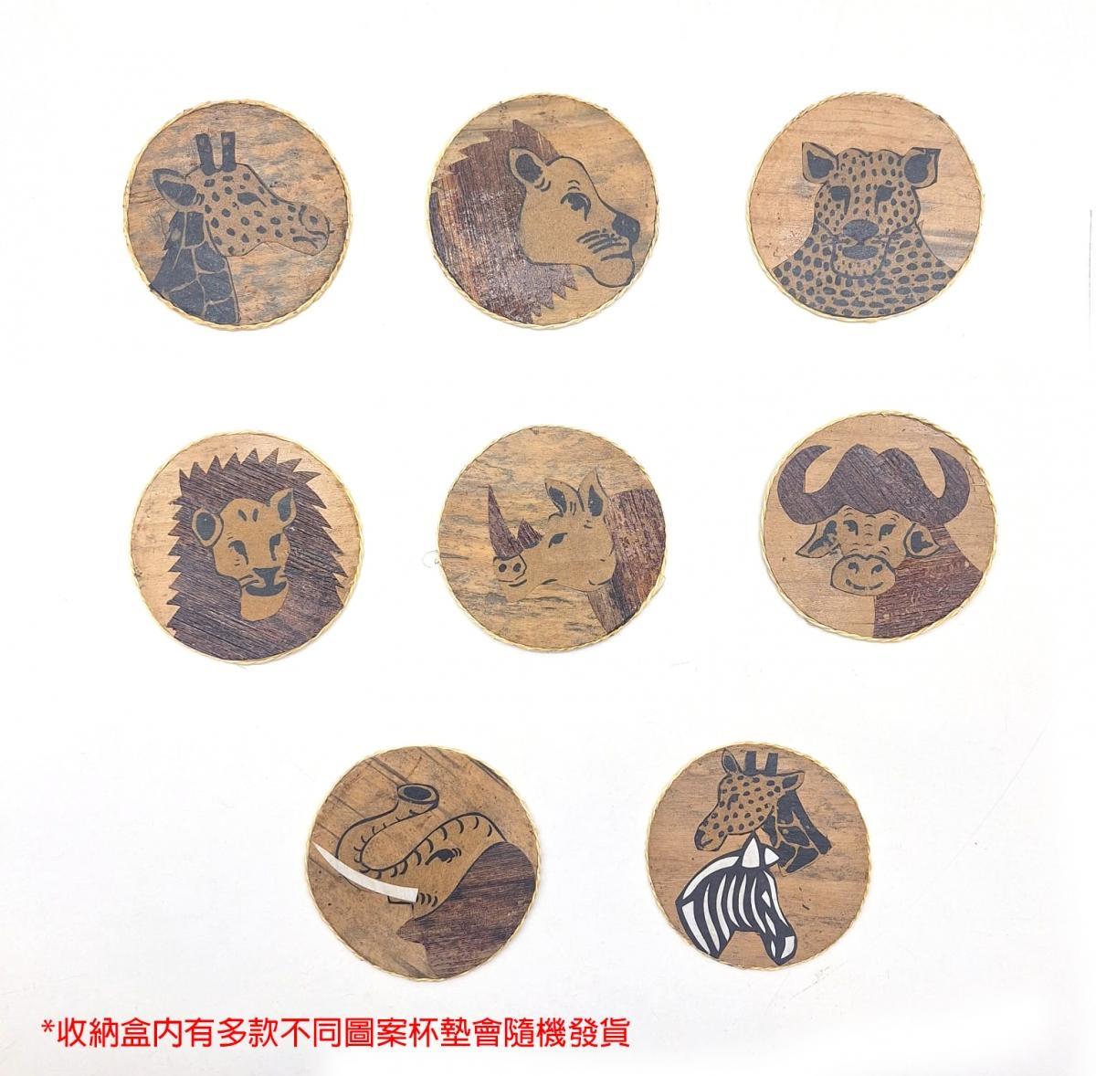 名稱 : 非洲圖案包附六片動物圖案杯墊 (AD-COASTER-AFRICA ) 呎吋 : 長9.4cm / 闊10.5cm / 高2cm(收納杯墊既盒) 材質 : 木材 特點 : --- 來自非洲的工藝品,六件組木製杯墊,刻有非洲動物圖案,附有配套設計的收納盒