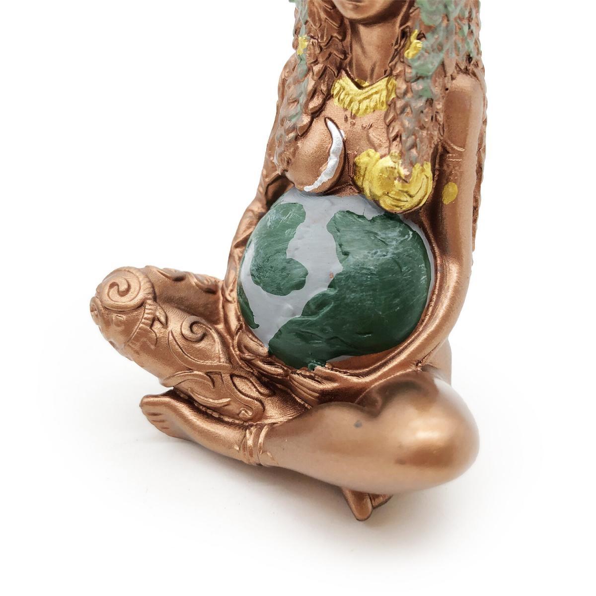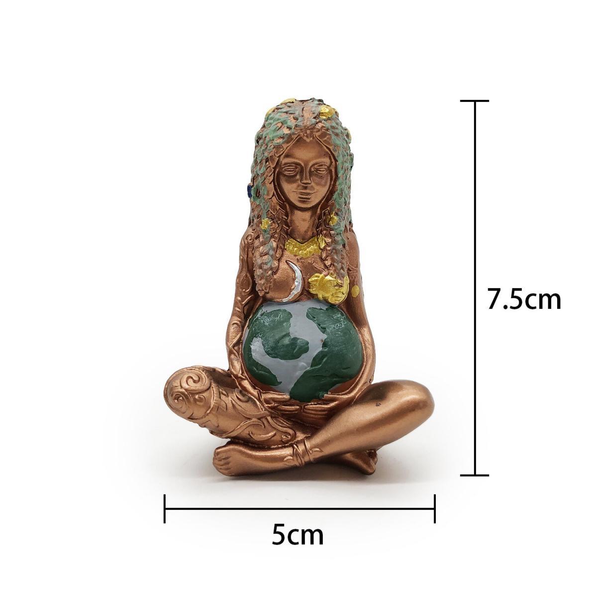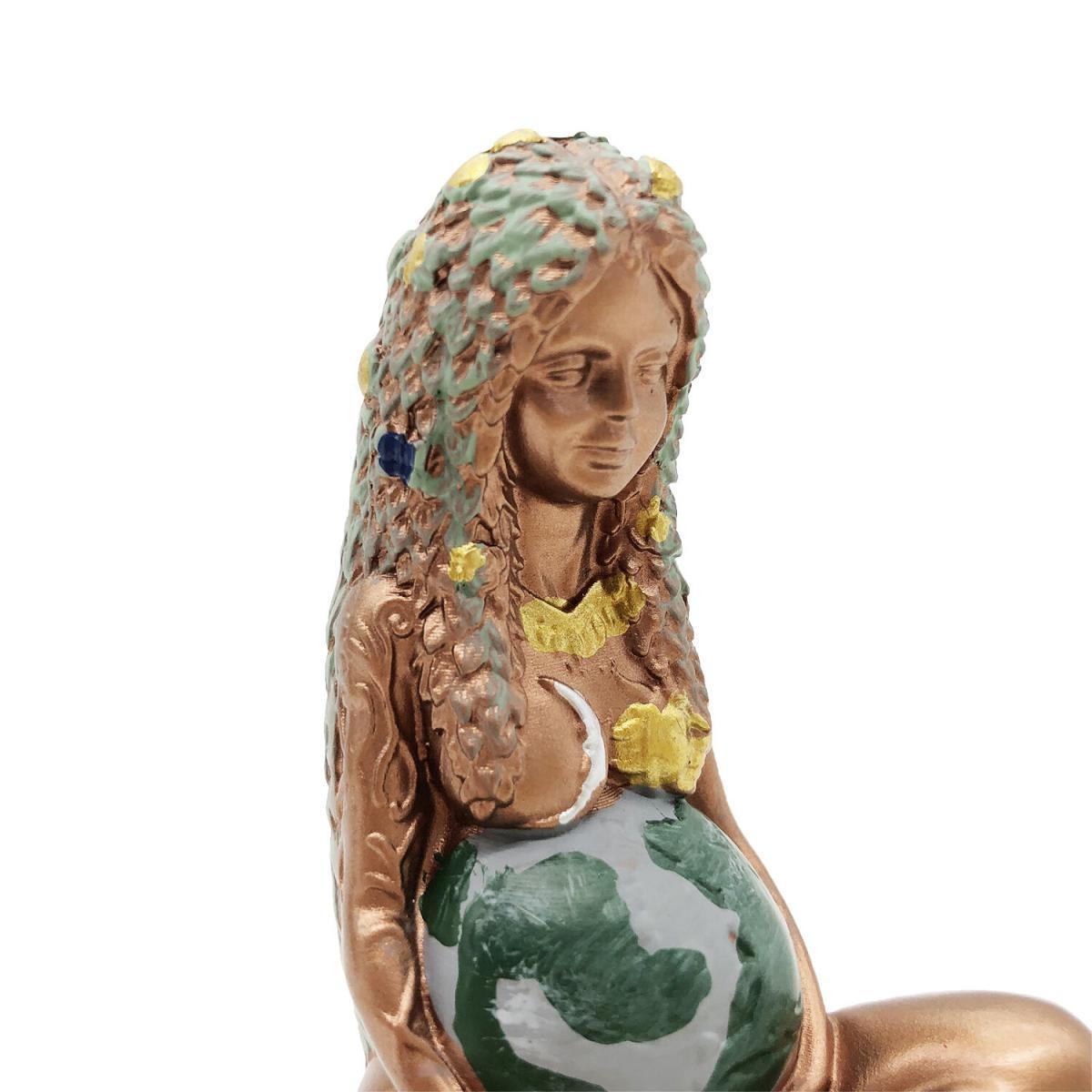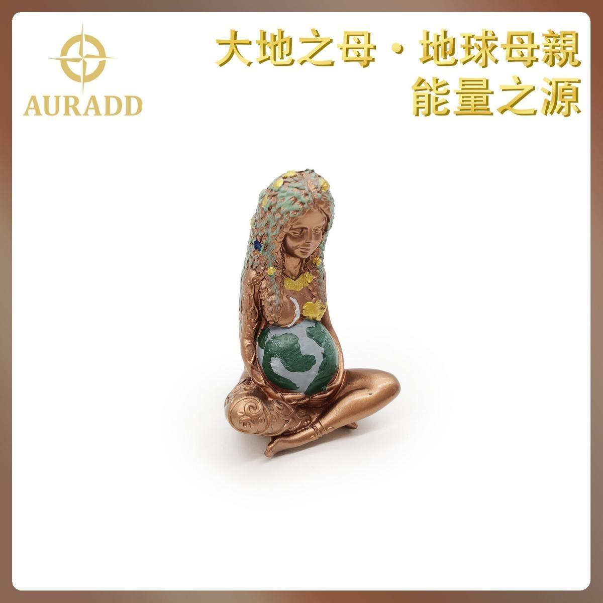 -懷孕的大地媽媽肚子是一顆地球,胸部是太陽和月亮,頭髮是一片片精細的小葉子。