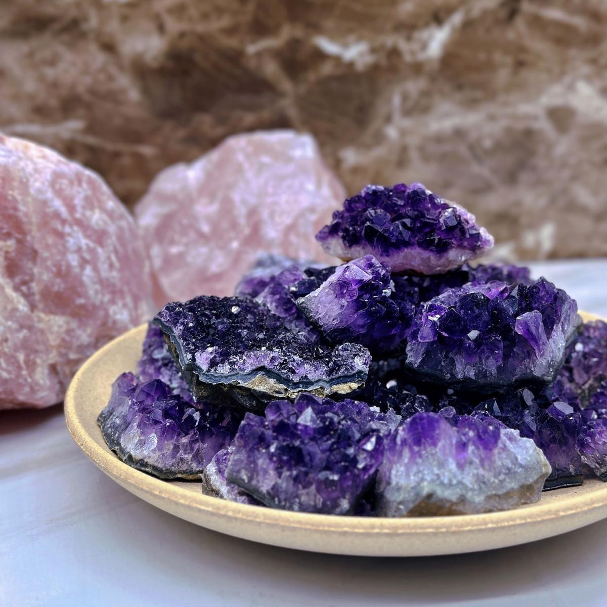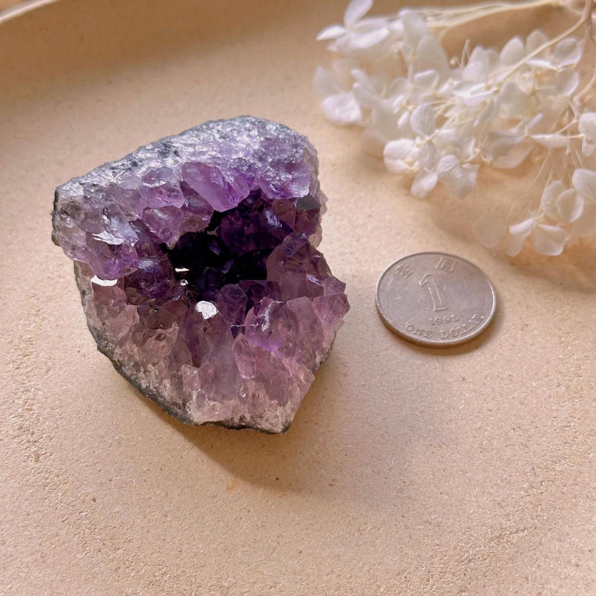 喚醒內在和直覺:紫水晶簇經常使用在冥想和精神治療中,它可以增強直覺、 喚醒內在以及連結更高領域。它可以刺激第三眼脈輪並強大內在成長和覺醒。
