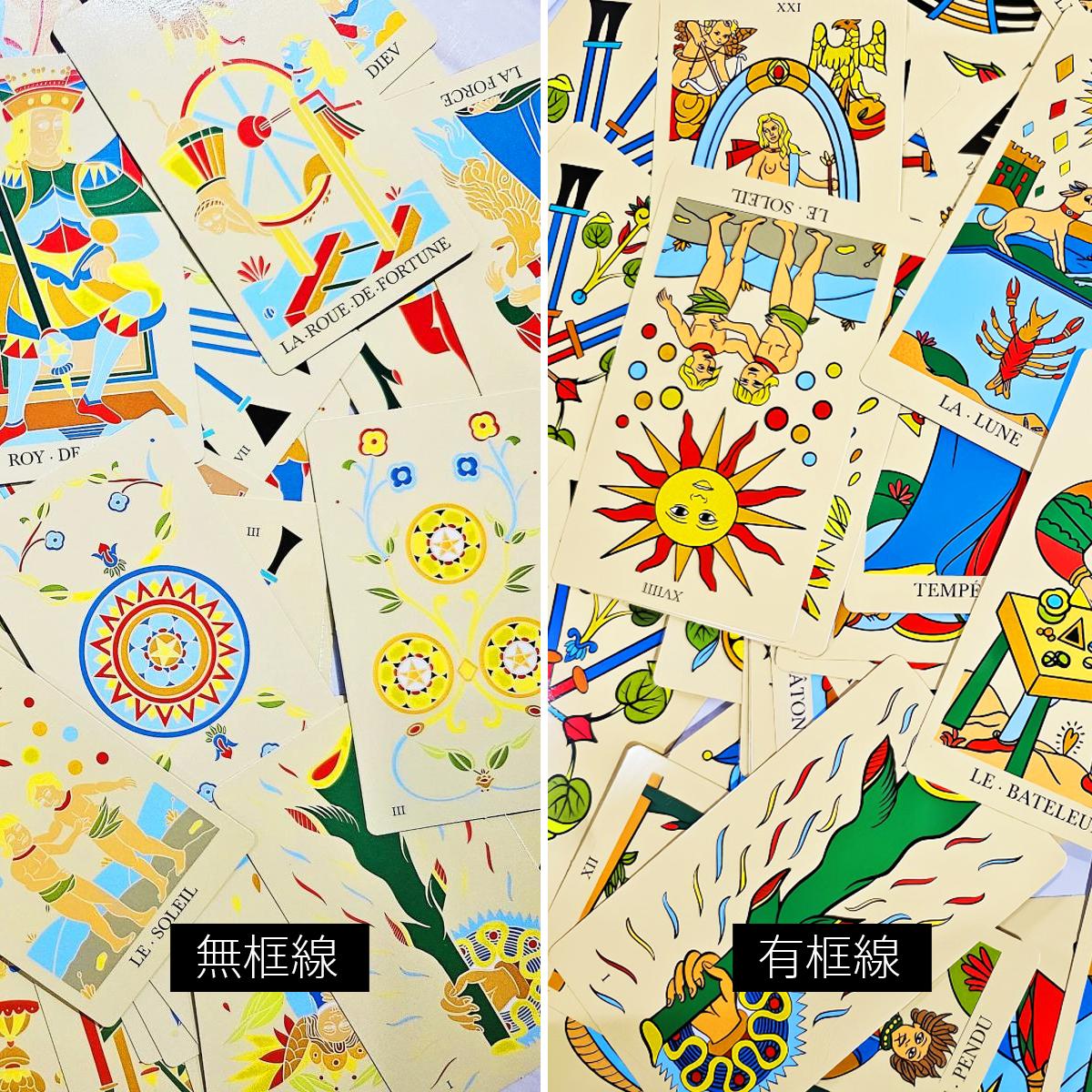 本套塔羅牌,分別印刷了有框線及沒有框線的版本,但釋義是一樣的。