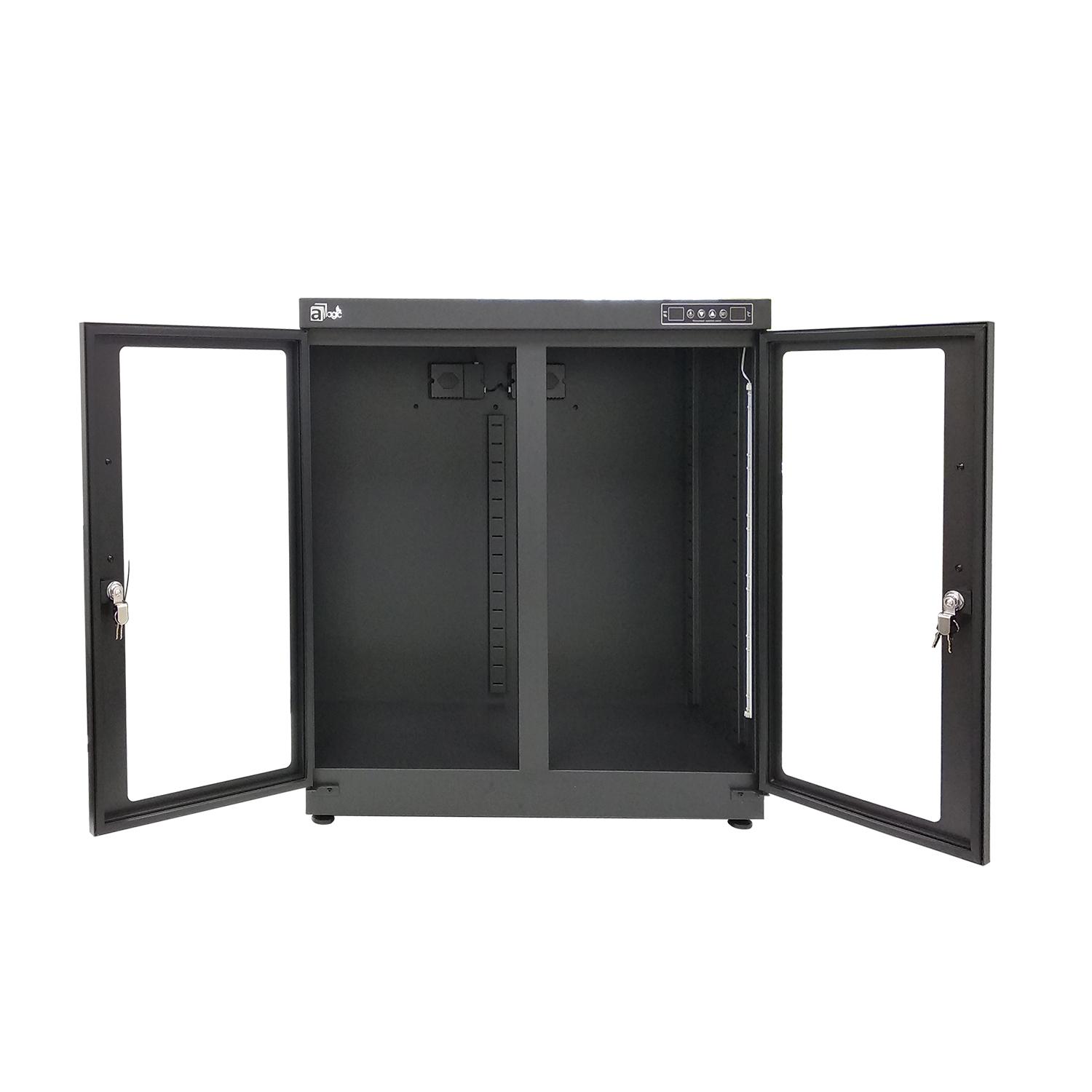防潮箱採用鋼化玻璃門,堅固安全,抗衝沖擊力超強,強度約是普通玻璃的四倍,堅固安全;散熱效率高,確保防潮箱運行穩定。