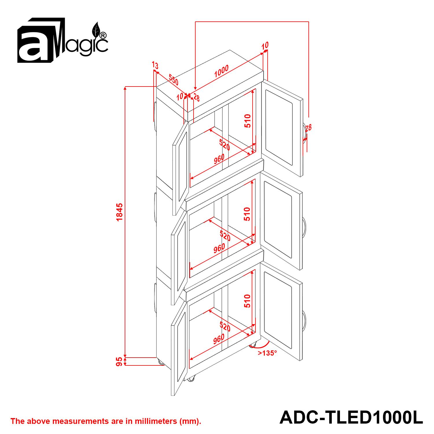 外部尺寸:W1000*D550*H1845mm 包含腳墊高度和打開門所佔空間