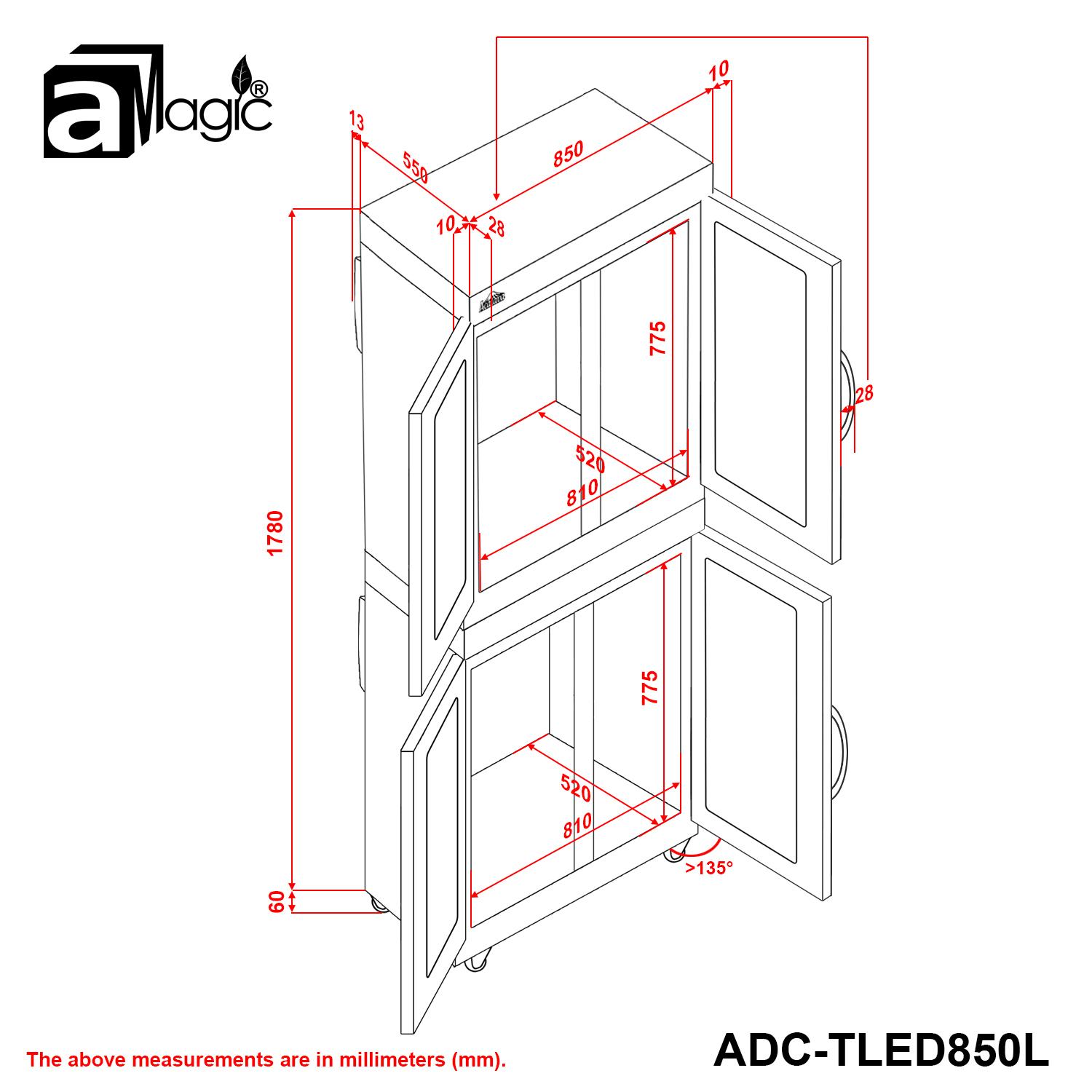 外部尺寸:W850*D550*H1780mm 包含腳墊高度和打開門所佔空間