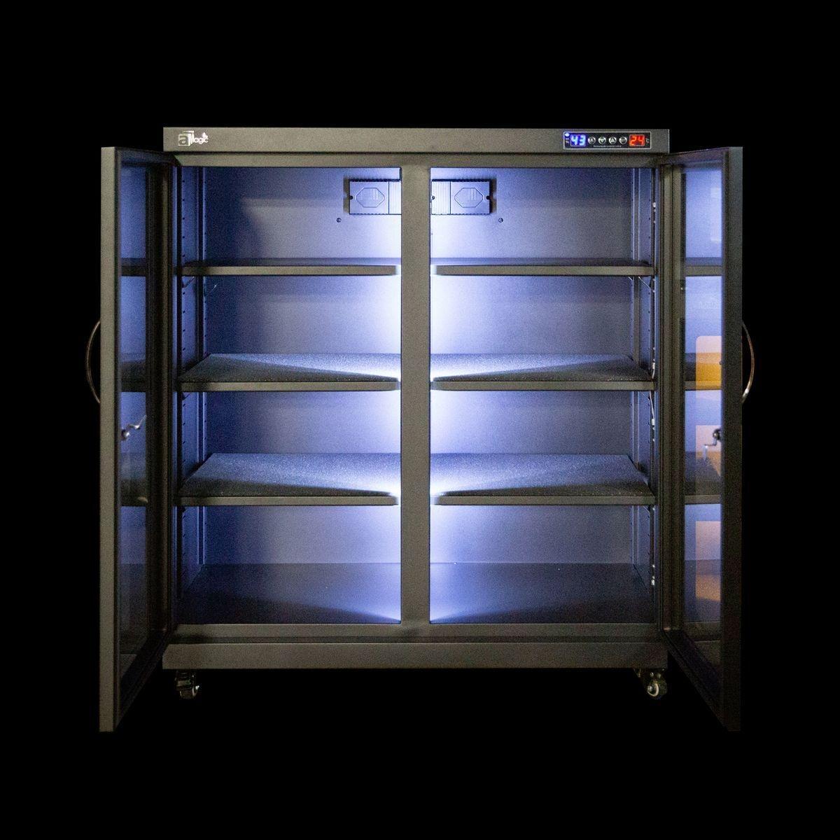 防潮箱採用鋼化玻璃門,堅固安全,抗衝沖擊力超強,強度約是普通玻璃的四倍,堅固安全;散熱效率高,確保防潮箱運行穩定。