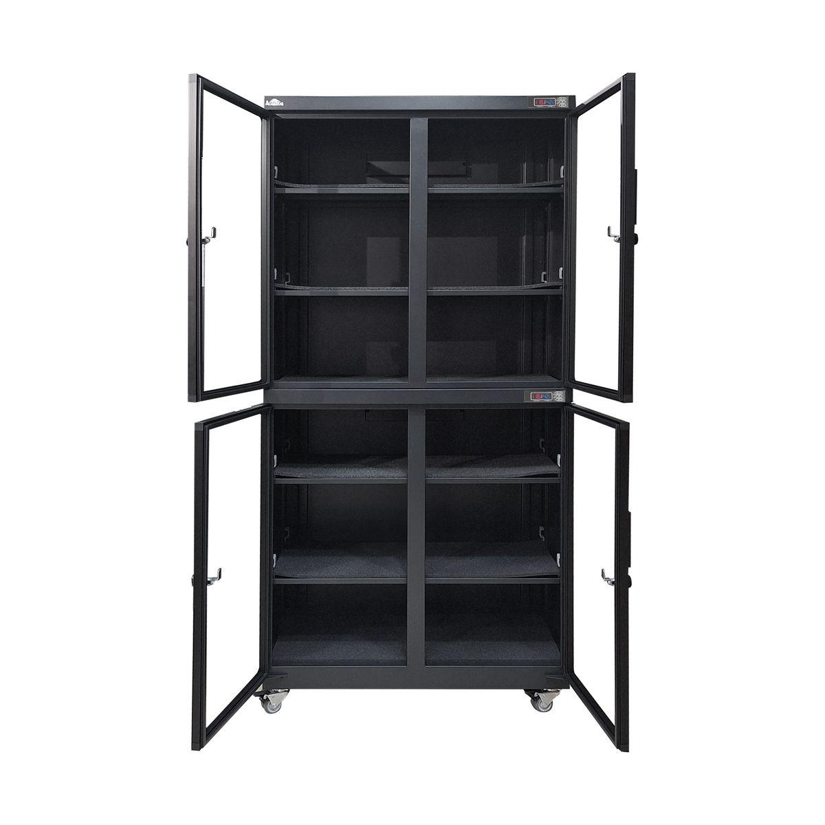 冷軋鋼板箱體,鋼化玻璃門,堅固安全,抗衝沖擊力超強,散熱效率高,確保防潮箱運行穩定。