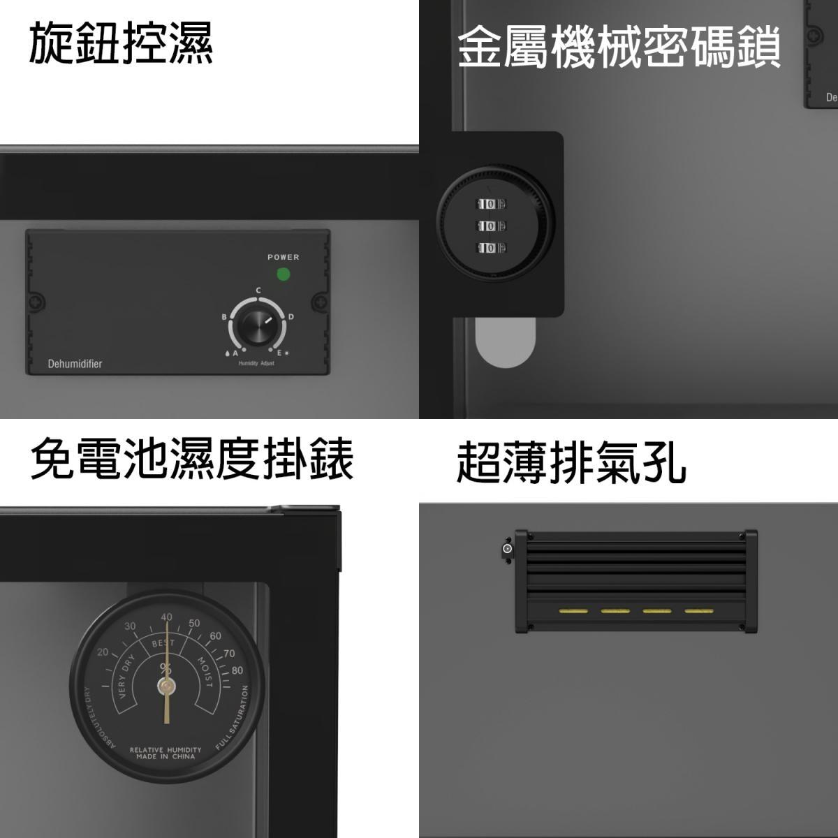 20L日式和風防潮箱櫃內旋鈕無極調節濕度配無須電池指針濕度掛錶及金屬密碼轉舌鎖