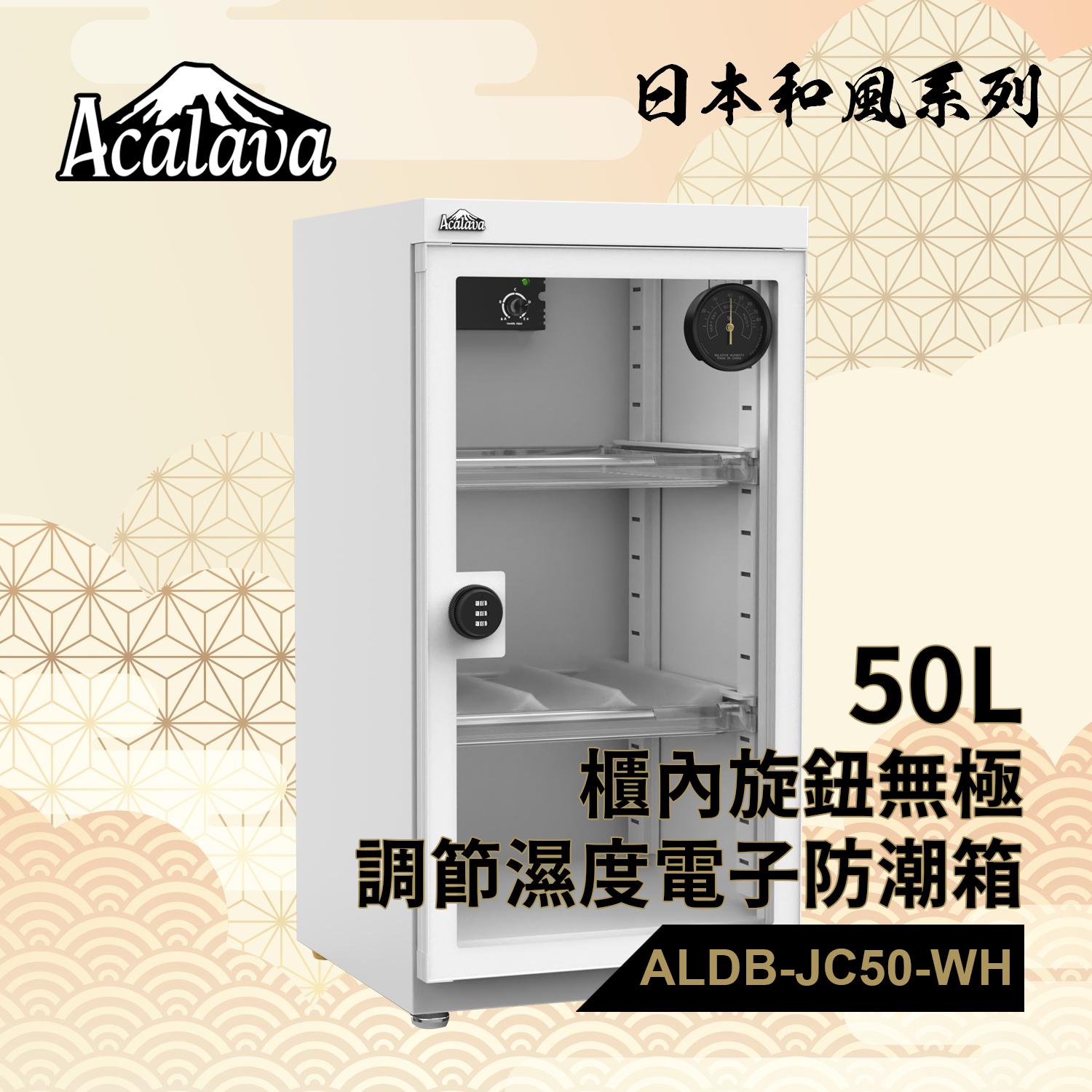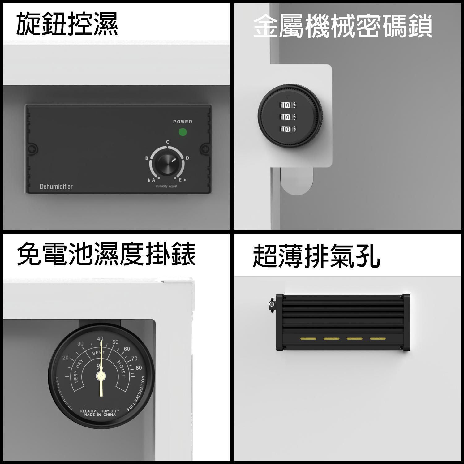 50L日式和風防潮箱櫃內旋鈕無極調節濕度配無須電池指針濕度掛錶及金屬密碼轉舌鎖