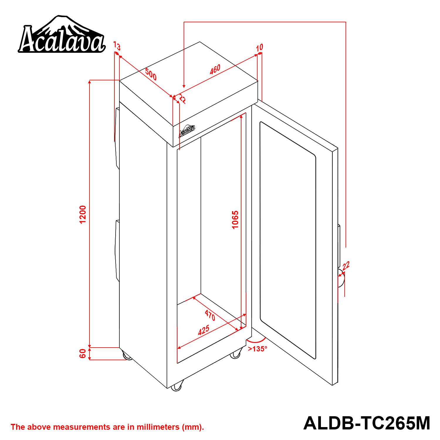 外部尺寸:W470*D535*H1260mm 包含腳墊高度和打開門所佔空間