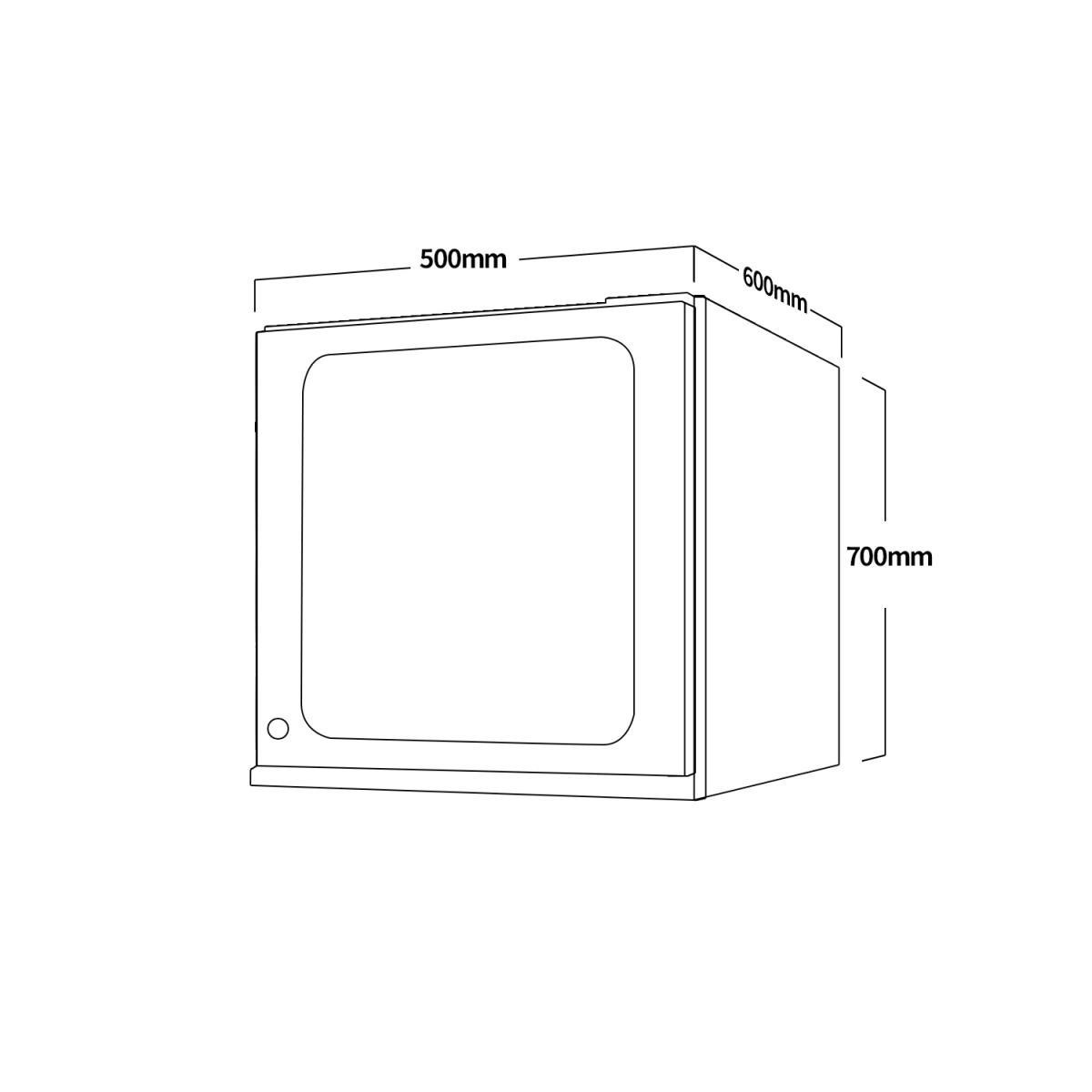 產品尺寸:W500*D600*H700mm 包含腳墊高度和打開門所佔空間