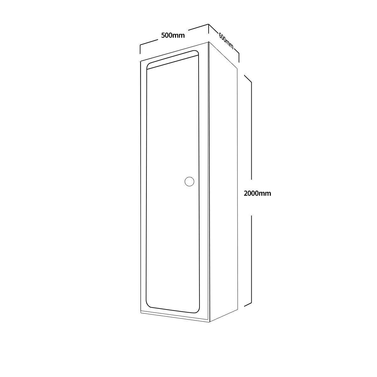 產品尺寸:W500*D600*H2000mm 包含腳墊高度和打開門所佔空間