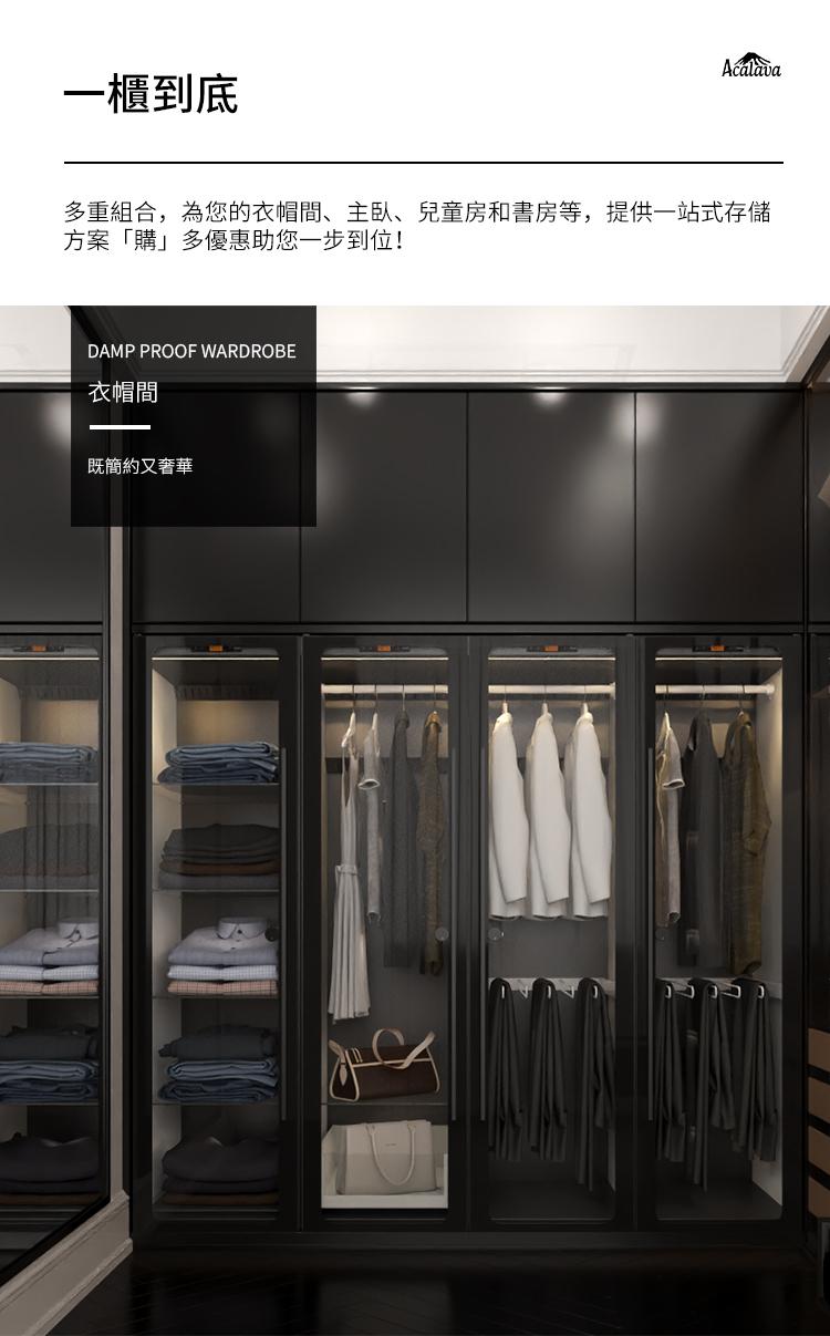 自由組合:衣櫃設計靈活,可以自由選購左開門或右開門,選擇不同的材料的門和層板數量,單獨使用或組合使用,還可以與頂櫃結合在一起,無需額外購買除濕機芯。