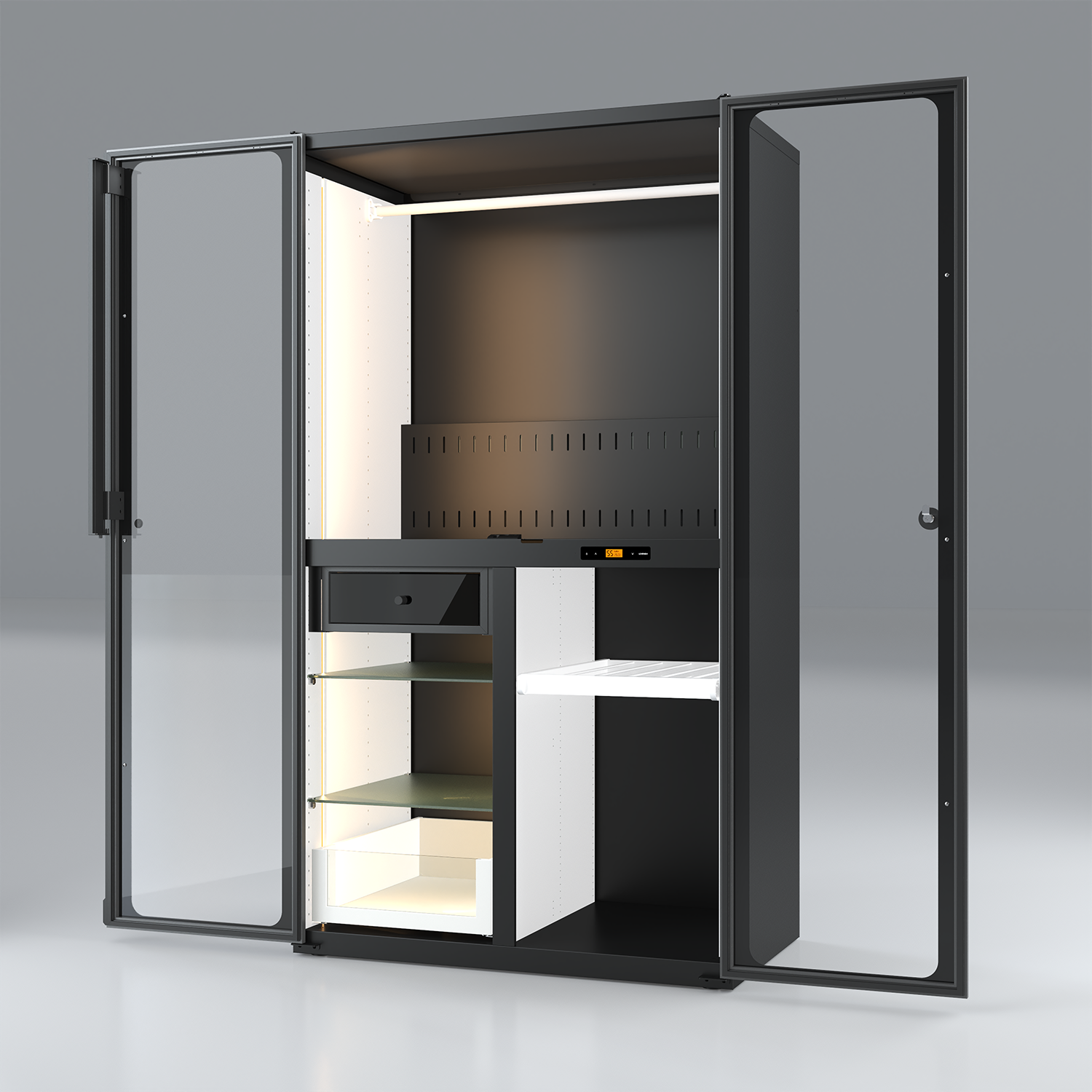 Acalava電子防潮衣櫃通過電子化的方式提供強大的除濕功能,有效地控制櫃內的濕度,從而防止霉菌的生長和物品的變質。同時,它還具有節能環保的特點,可以有效地節省能源。此外,這款衣櫃還提供充足的收納空間和展示功能,讓您的物品井然有序地擺放和展示。同時,它的安全性和實用性也得到了充分的考慮,為您的物品提供全方位的保護。