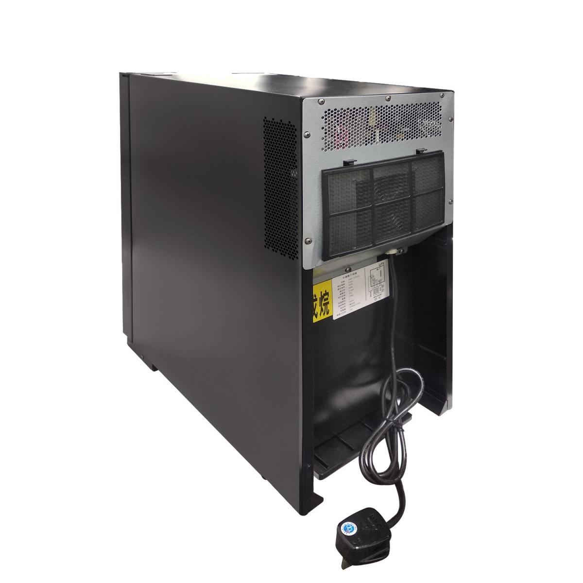 溫控及除濕主機為採高效率微電腦冷凍式恆溫恆濕結構,溫度可控制在約±1℃。我們採用最新科技美國半導體冷凍晶片設計,箱內濕氣%RH自動控製冷凍晶片動作,濕氣即凝結形成結霜,致冷板上成水珠,經導水孔排出箱外由吸水纖維連著於大散熱片,由散熱片熱氣自然蒸發所排水氣,達到除濕最佳效果,故不需排水管或水槽,是最好冷熱交換科技之設計,濕度太低 由無水加濕器 自動加濕。溫控採用美國製造高功率冷熱晶片,當溫度超過設定值即自動提供直流電壓於制冷晶片降溫,超靜音,達到恆溫控制。降溫為環境溫度約±10℃。 LT系列另增加櫃內循環速度,進氣及排氣孔加裝超靜循環風扇產生自然對流風道,使上下左右溫濕度均勻及達到快速控濕控溫功能。微電腦處理器會將溫濕度感側值類比訊號利用A/D轉換成數位值再PID自動演算變頻式控制,達到均勻環境控制。