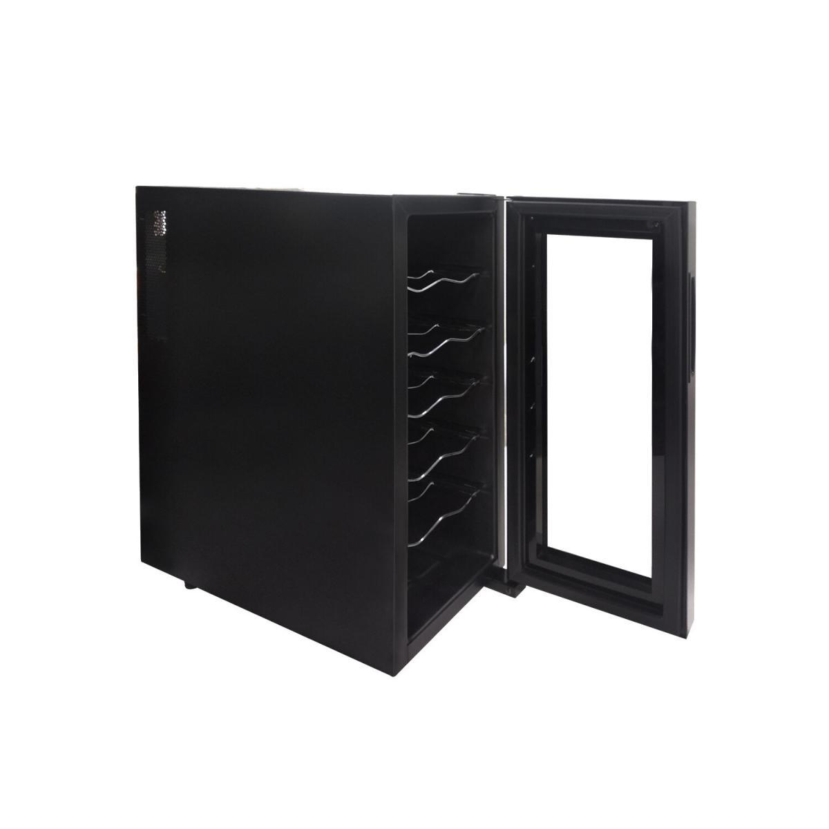 壓縮機酒櫃(利用蒸汽壓縮來達到所需溫度),為了達到冷卻效果,壓縮機將製冷劑氣體泵入製冷系統,製冷系統由許多元件組成,其中包括蒸發器和冷凝器。在設置良好的狀況下,壓縮機應安裝於酒櫃的主體上,並由能吸收振動的橡膠減震墊固定,這是為了避免任何振動傳導至紅酒。有些酒櫃會使用內部風扇來保持內部溫度均勻,有些則使用外部風扇把熱量從壓縮機中吹走。壓縮機可以使用許多種不同類型的製冷劑氣體,其中有些製冷劑氣體耗用的能源更少,本公司採用 R600a,同時還具有零臭氧消耗特性。