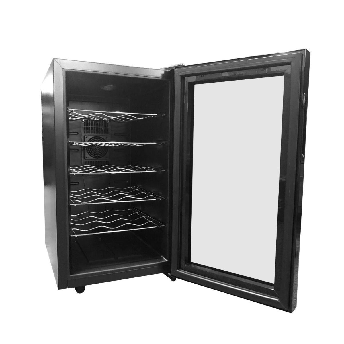 壓縮機酒櫃(利用蒸汽壓縮來達到所需溫度),為了達到冷卻效果,壓縮機將製冷劑氣體泵入製冷系統,製冷系統由許多元件組成,其中包括蒸發器和冷凝器。在設置良好的狀況下,壓縮機應安裝於酒櫃的主體上,並由能吸收振動的橡膠減震墊固定,這是為了避免任何振動傳導至紅酒。有些酒櫃會使用內部風扇來保持內部溫度均勻,有些則使用外部風扇把熱量從壓縮機中吹走。壓縮機可以使用許多種不同類型的製冷劑氣體,其中有些製冷劑氣體耗用的能源更少,本公司採用 R600a,同時還具有零臭氧消耗特性。