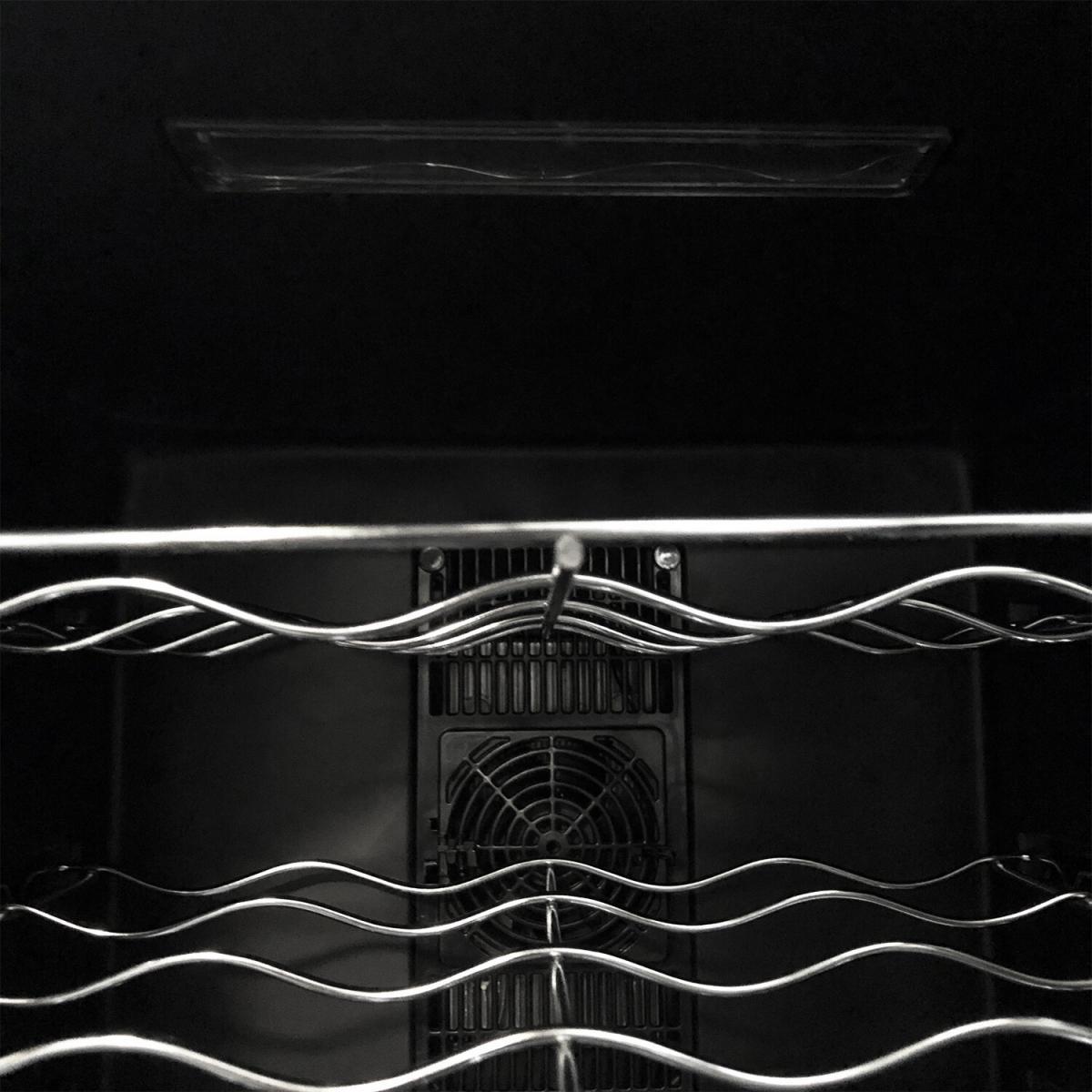 壓縮機酒櫃(利用蒸汽壓縮來達到所需溫度),為了達到冷卻效果,壓縮機將製冷劑氣體泵入製冷系統,製冷系統由許多元件組成,其中包括蒸發器和冷凝器。在設置良好的狀況下,壓縮機應安裝於酒櫃的主體上,並由能吸收振動的橡膠減震墊固定,這是為了避免任何振動傳導至紅酒。有些酒櫃會使用內部風扇來保持內部溫度均勻,有些則使用外部風扇把熱量從壓縮機中吹走。壓縮機可以使用許多種不同類型的製冷劑氣體,其中有些製冷劑氣體耗用的能源更少,本公司採用 R600a,同時還具有零臭氧消耗特性。