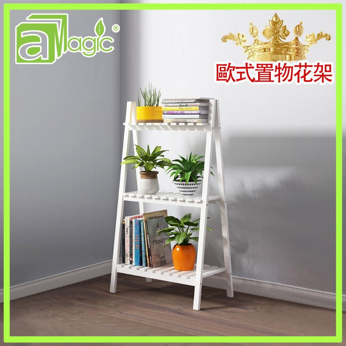 純白色3層實木歐式置物花架(AWH-RACK-3L-WHITE)