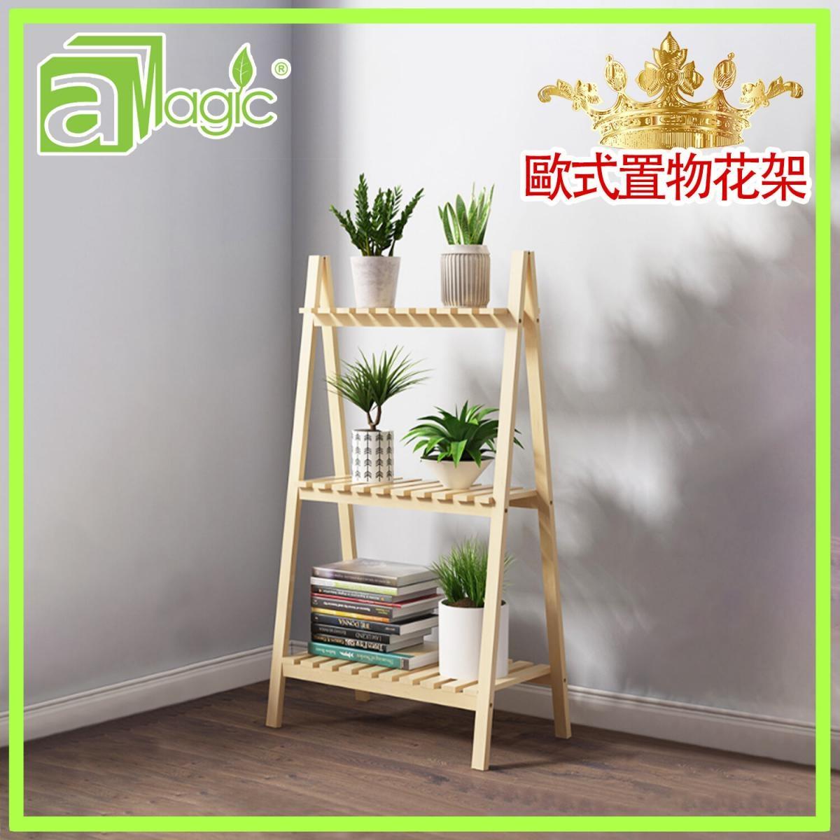 原木色3層實木歐式置物花架(AWH-RACK-3L-WOOD)