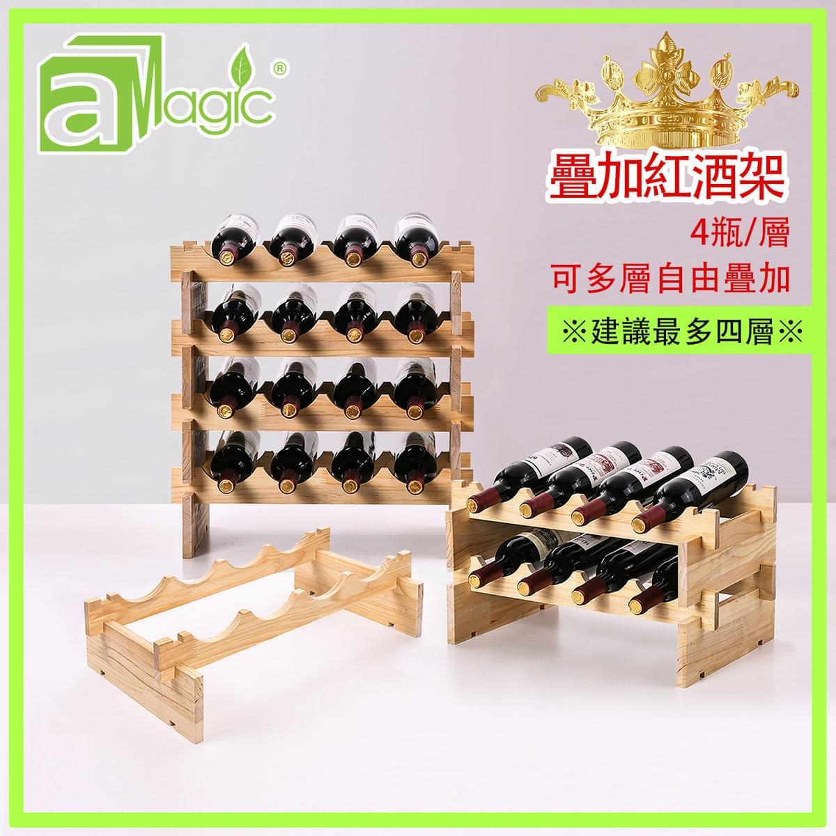 四瓶裝松木製可疊加紅酒架(AWH-STACK-01) 容量:4瓶/層 (可自由購買多層疊加) 物料:松木 尺寸:寬50cmX高32cmx深15cm (每加一層高12.6cm) 淨重:1000克 |