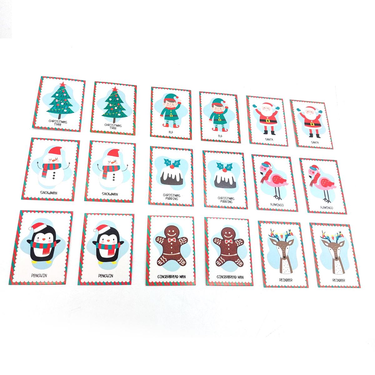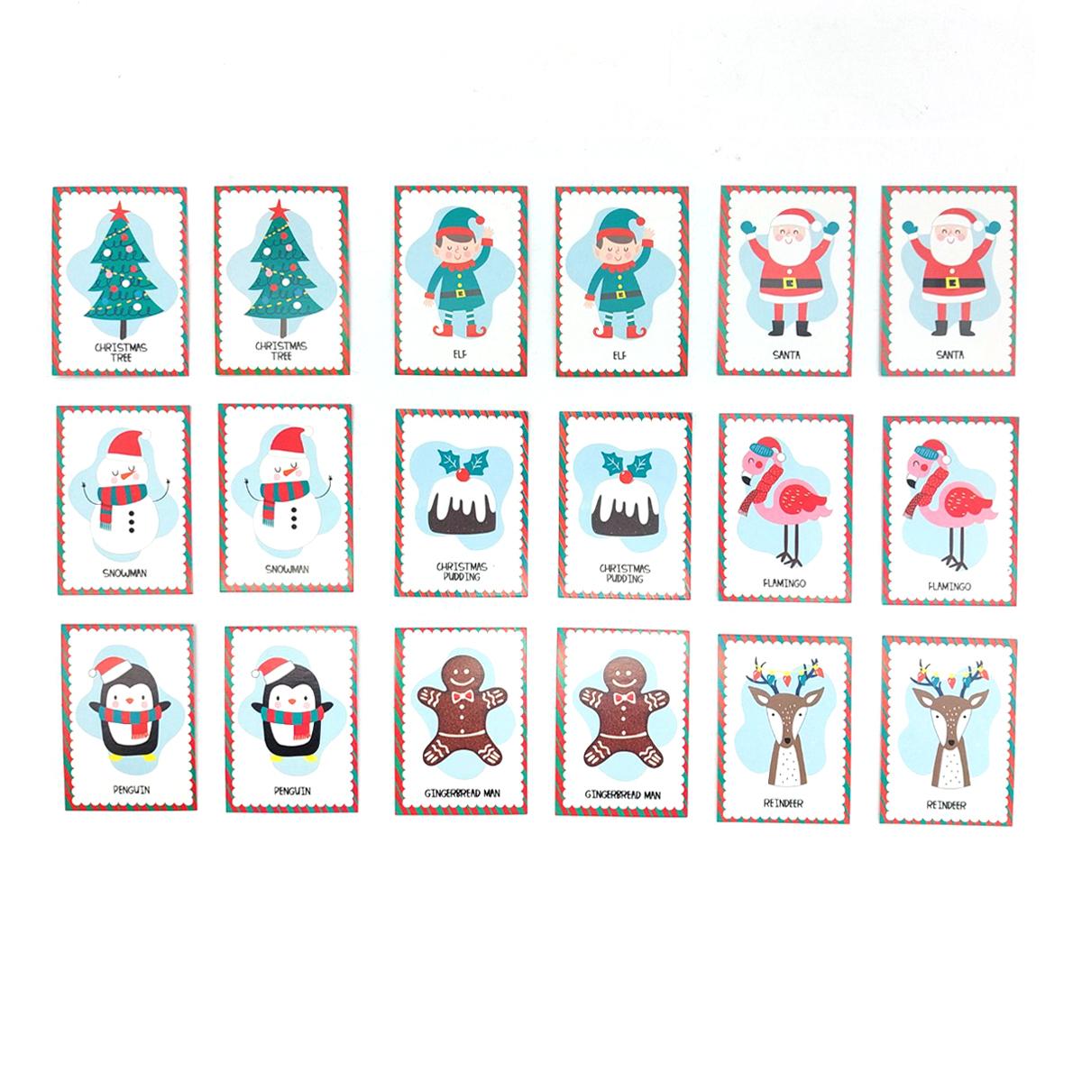 ● 所有卡片都帶有可愛的聖誕元素,如聖誕老人、雪人、聖誕樹、馴鹿等。適合聚會的兒童和成人 的經典遊戲,讓每個人都忙於配對,玩得開心!