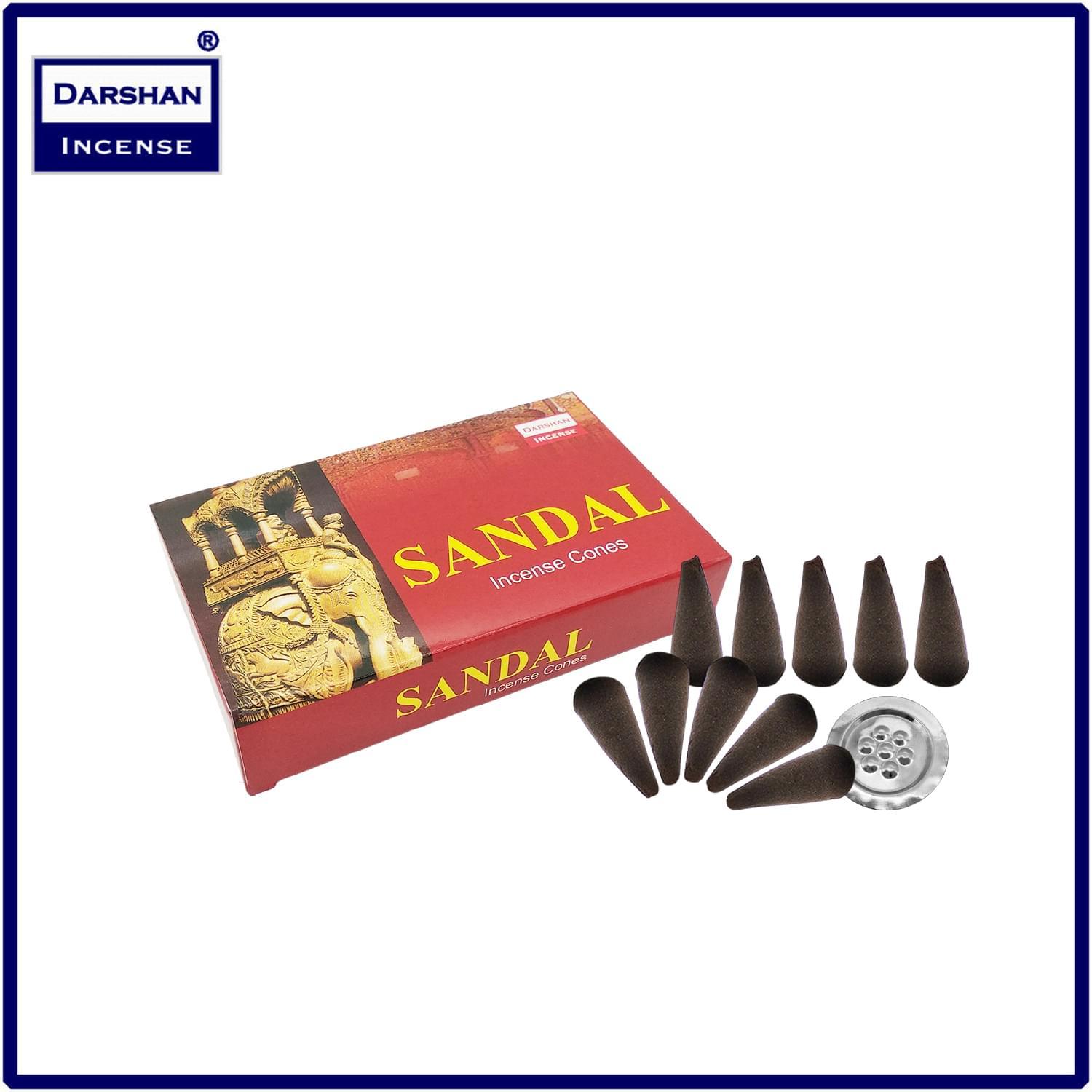(10粒四方盒裝)SANDAL味印度進口純天然手工制圓錐塔香香薰 瑜伽冥想專用錐形香薰粒 瑜珈塔香 錐粒香 錐形香 DARSHAN-CONES-SANDAL