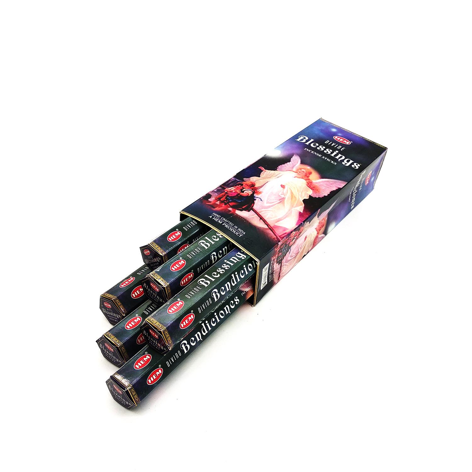 BLESSINGS神聖祝福線香20支六角柱盒x6件裝,印度進口純天然手工制作印度香檀香熏香棒瑜珈香天然香枝冥想提神淨化放鬆減壓抗疫增添氣氛情調抗疫防菌熱賣(HI-BLESSINGS-X6)