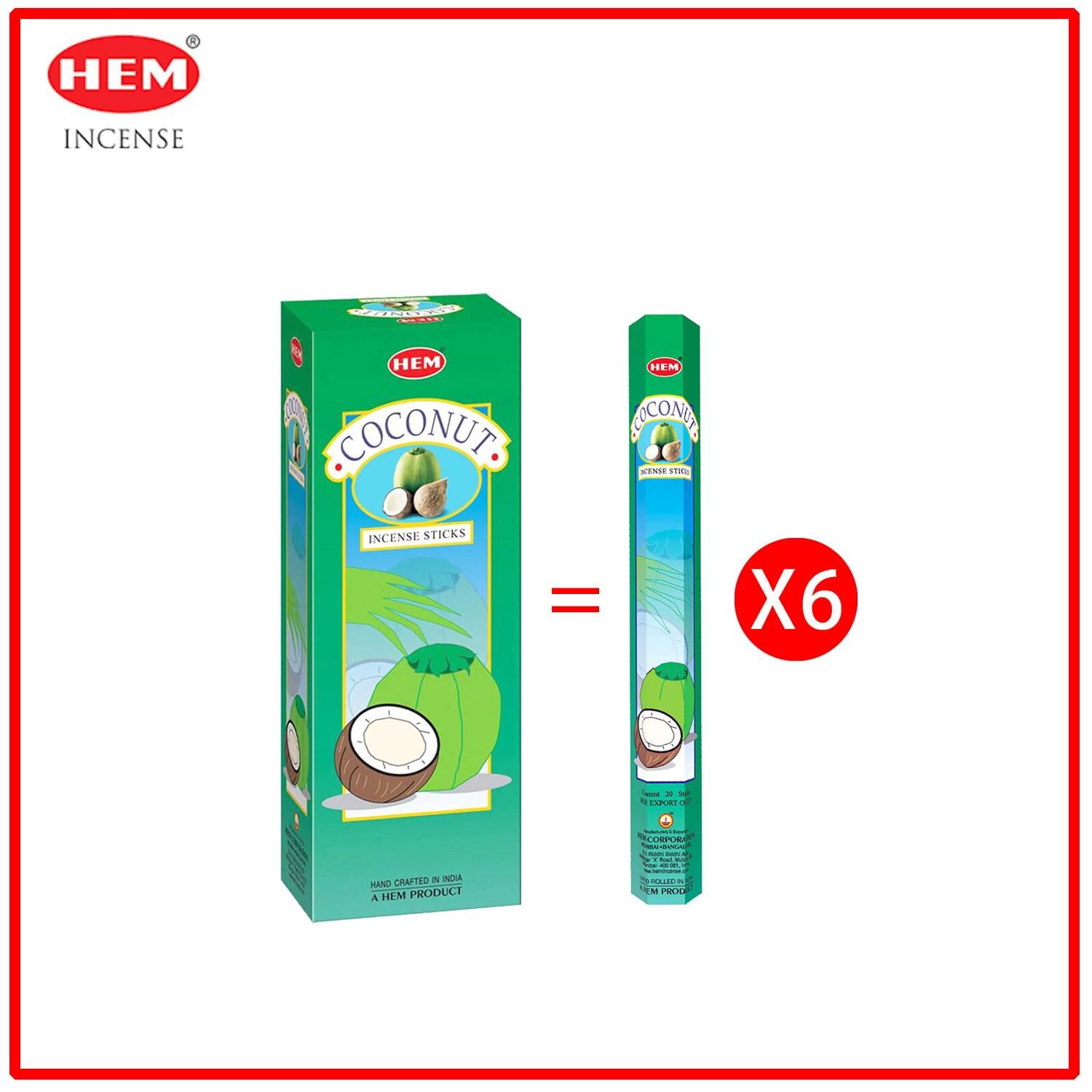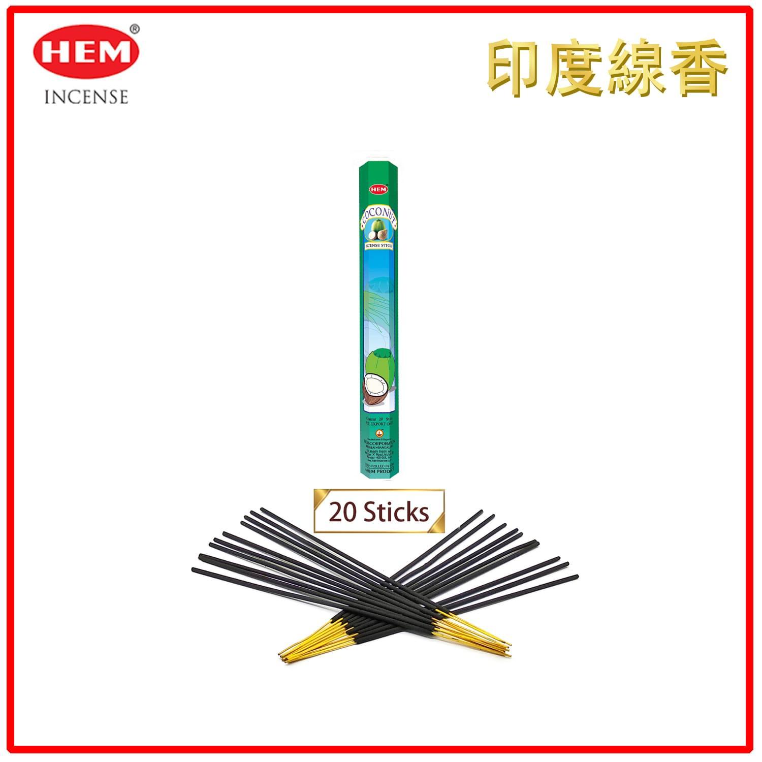 (20支六角柱盒裝)COCONUT椰子味印度進口純天然手工制線香棒 香枝 瑜伽冥想專用香薰 HI-COCONUT