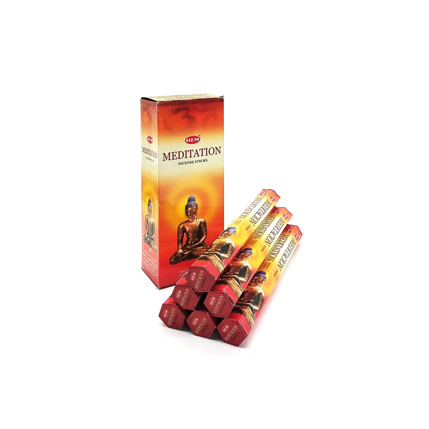 MEDITATION冥想線香20支六角柱盒x6件裝,印度進口純天然手工制作印度香檀香熏香棒瑜珈香天然香枝冥想提神淨化放鬆減壓抗疫增添氣氛情調抗疫防菌熱賣(HI-MEDITATION-X6)