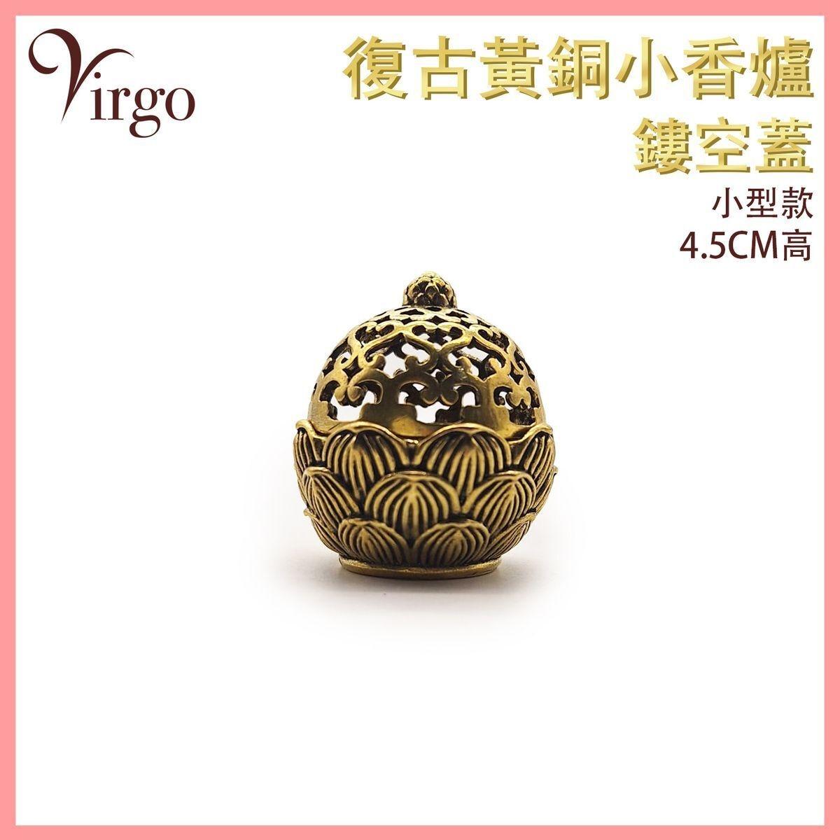名稱 : 復古黃銅鏤空蓋蓮花小香爐