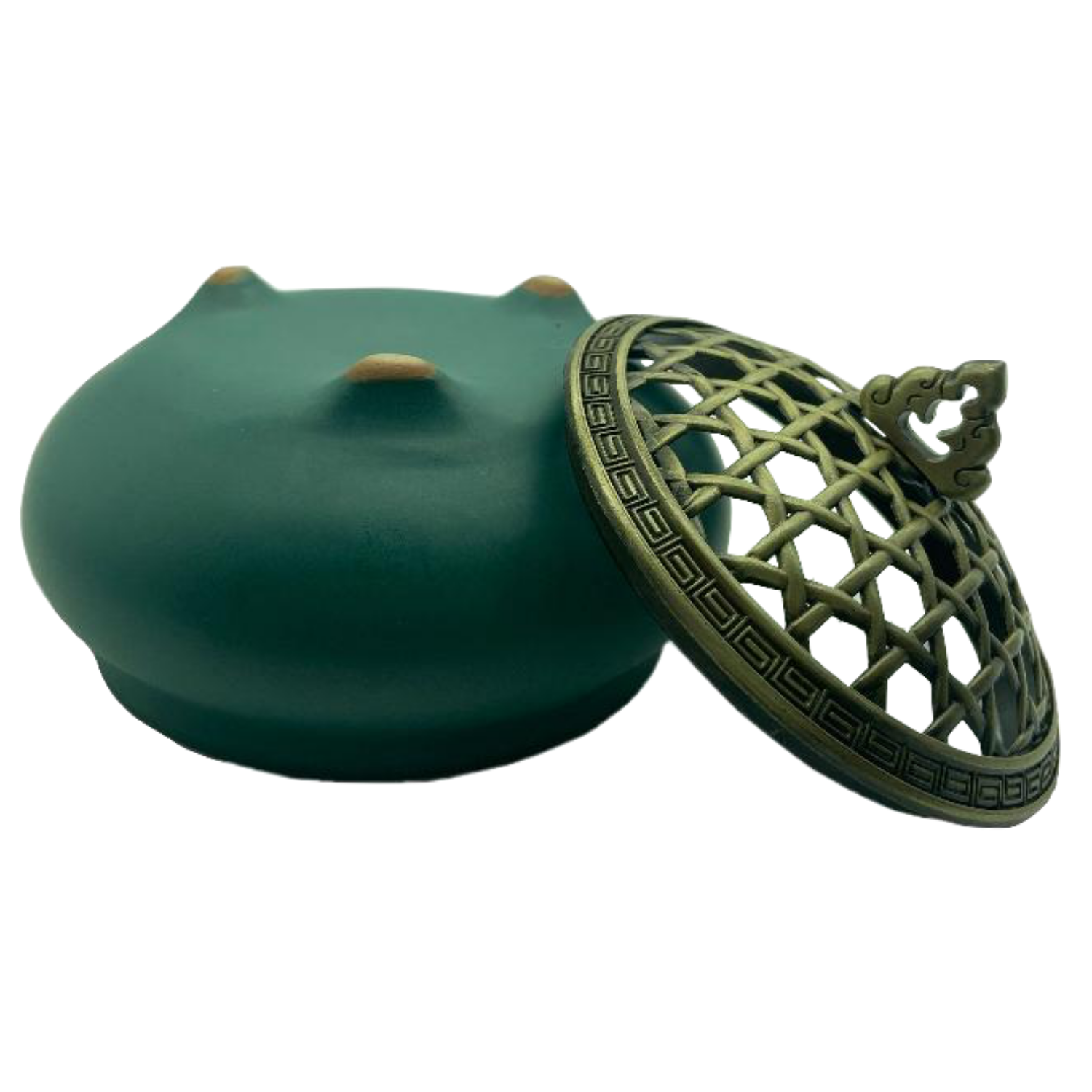 綠色青瓷合金蓋圓錐香(塔香)座,便攜塔香座古典彩色青瓷身鋅合金蓋混合陶瓷(青瓷)熏香爐點香盤香托盤香具盛具香盤香鼎首飾箱飾物盒聚寶盆HEM塔香線香必備配件特價熱賣店長(HIH-CELADON-GREEN)