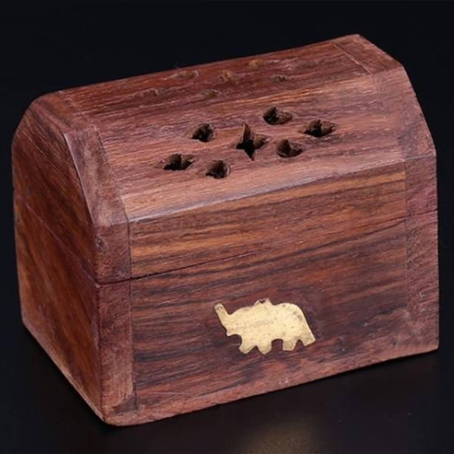 印度進口實木純手工銅飾升官發財塔香盒(HIH-CONE-BOX)
