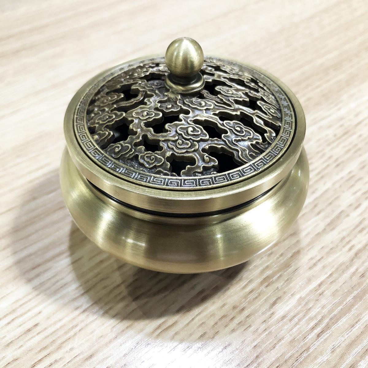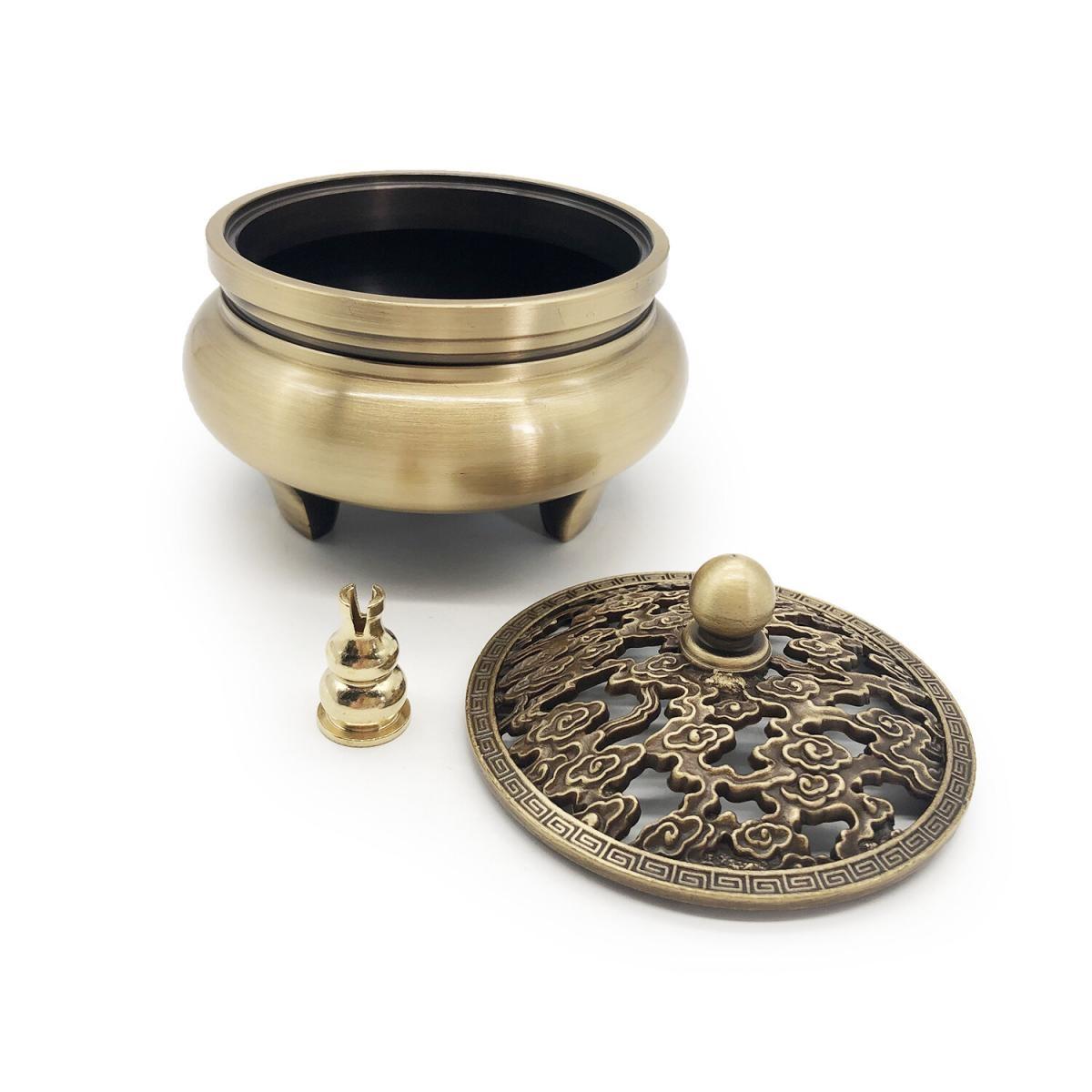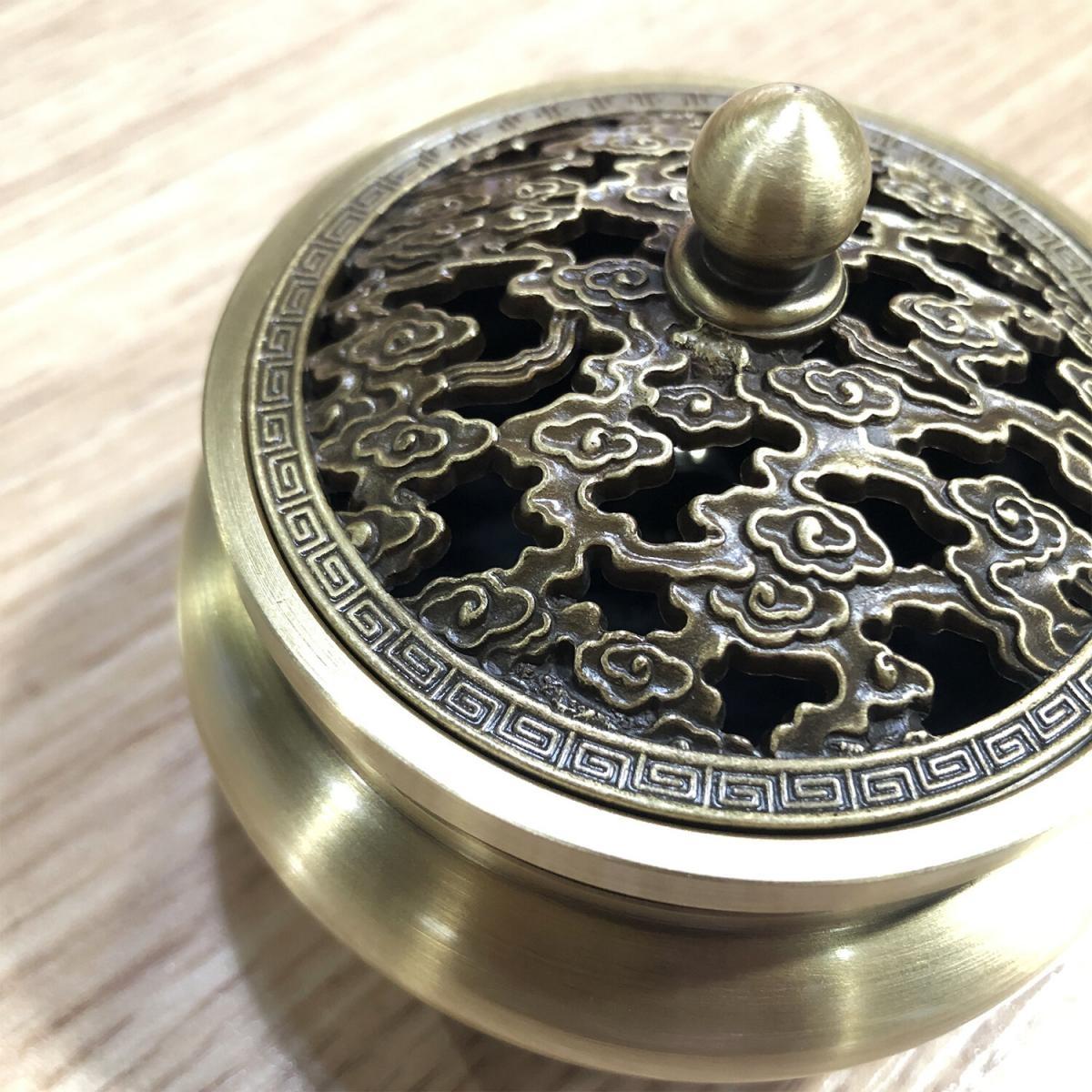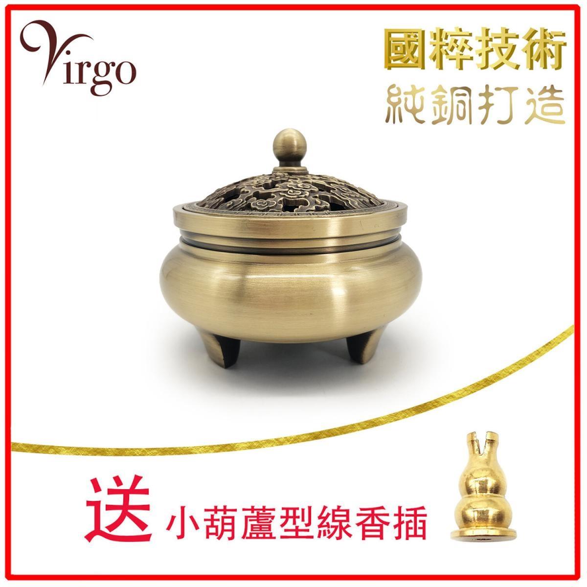 腳鼎款富貴浮雲純銅圓錐香(塔香)香爐(HHIH-COPPER-LEG-CLOUD)