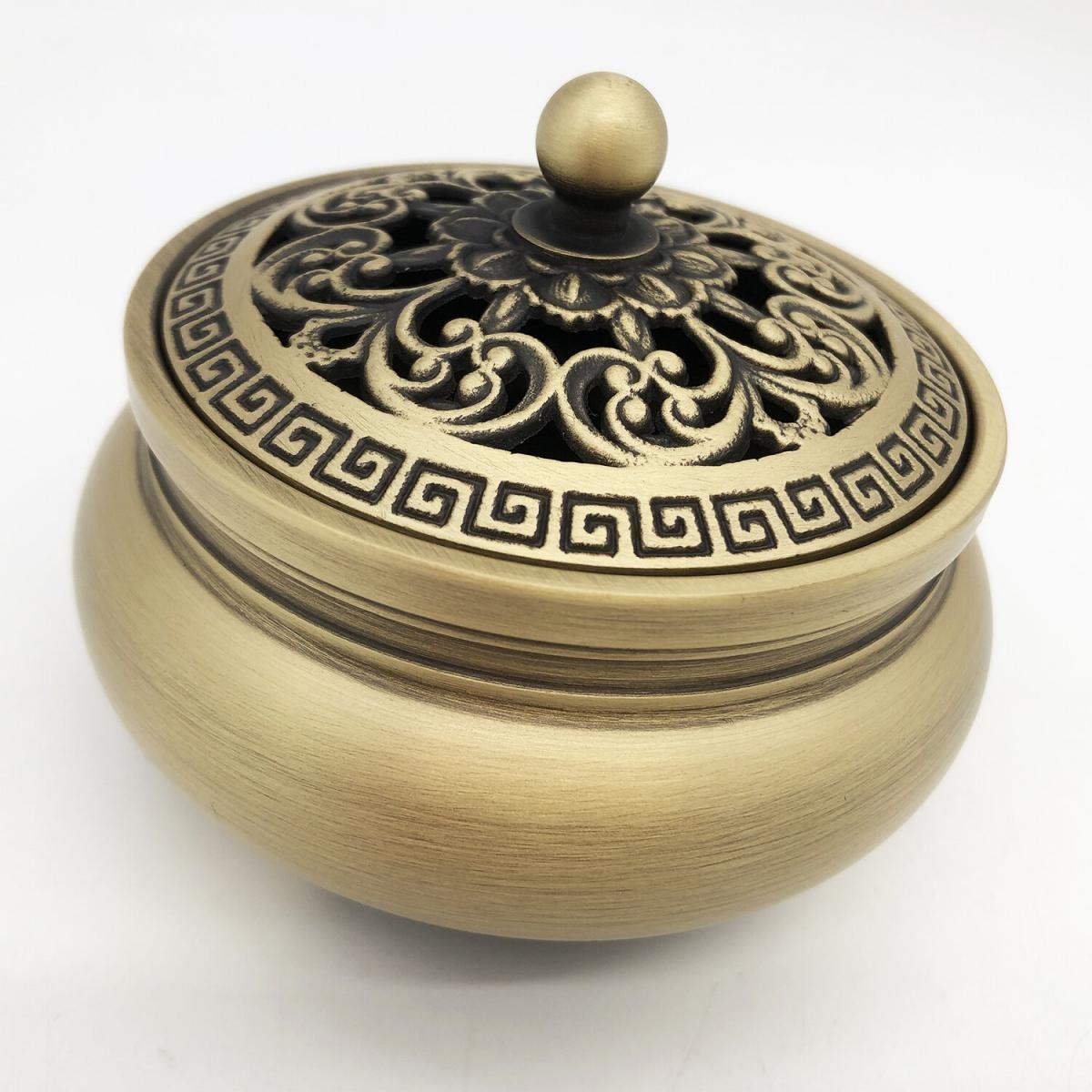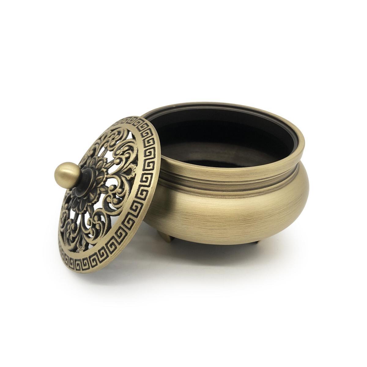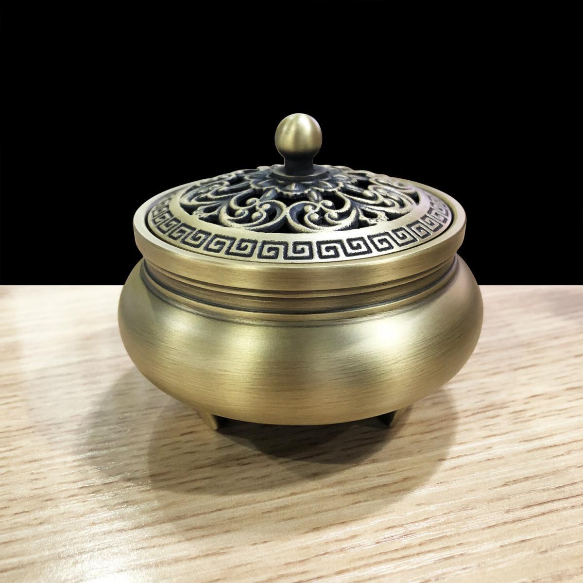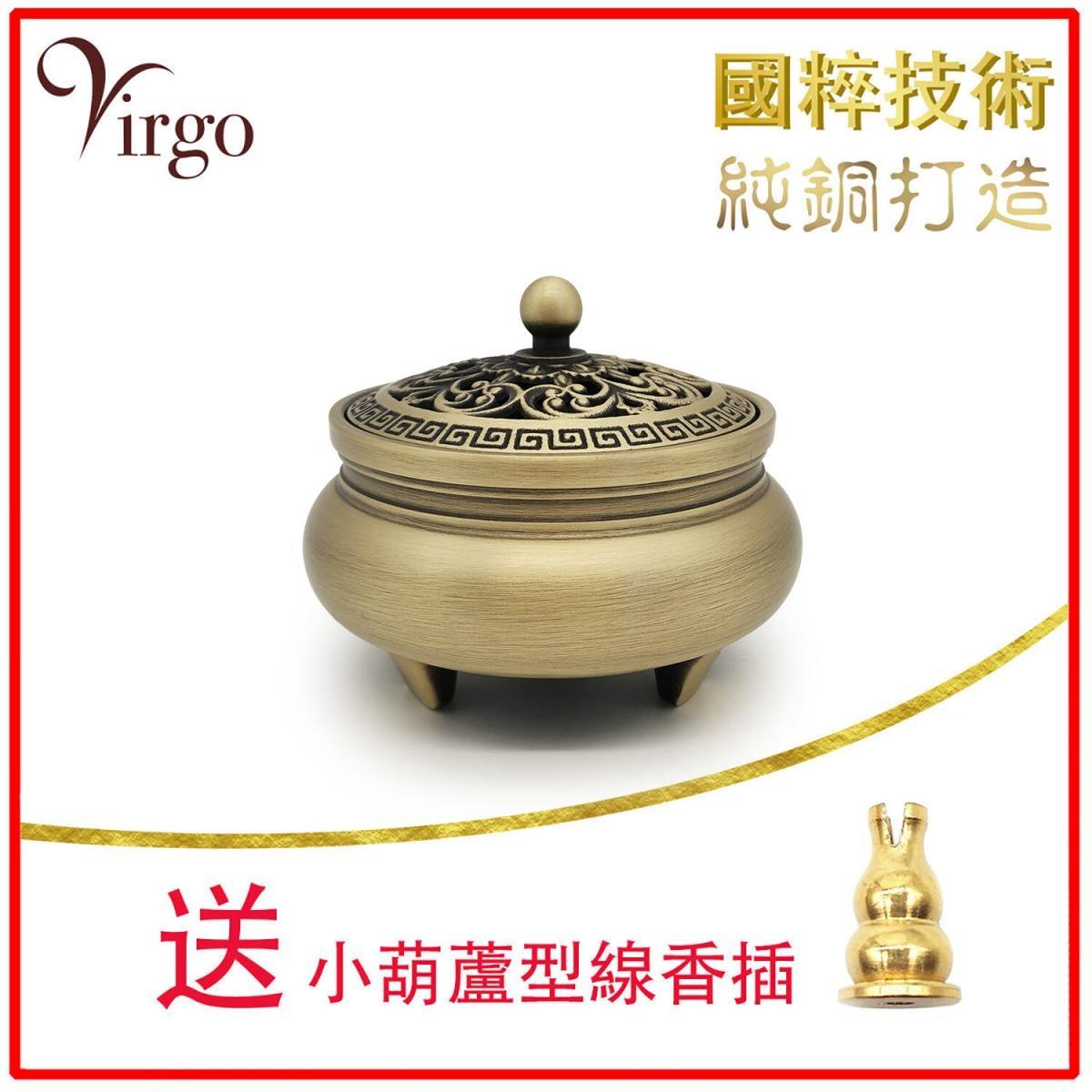 腳鼎款蓮花紋純銅香爐印度香薰淨化空氣茶道香爐仿古造型(HIH-COPPER-LEG-LOTUS)