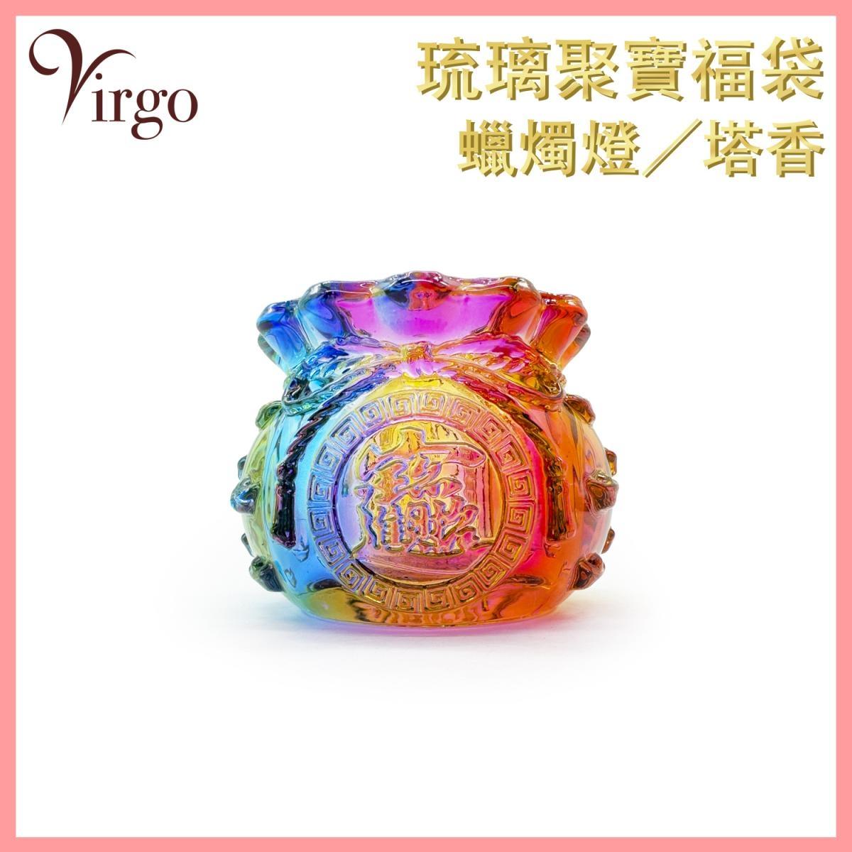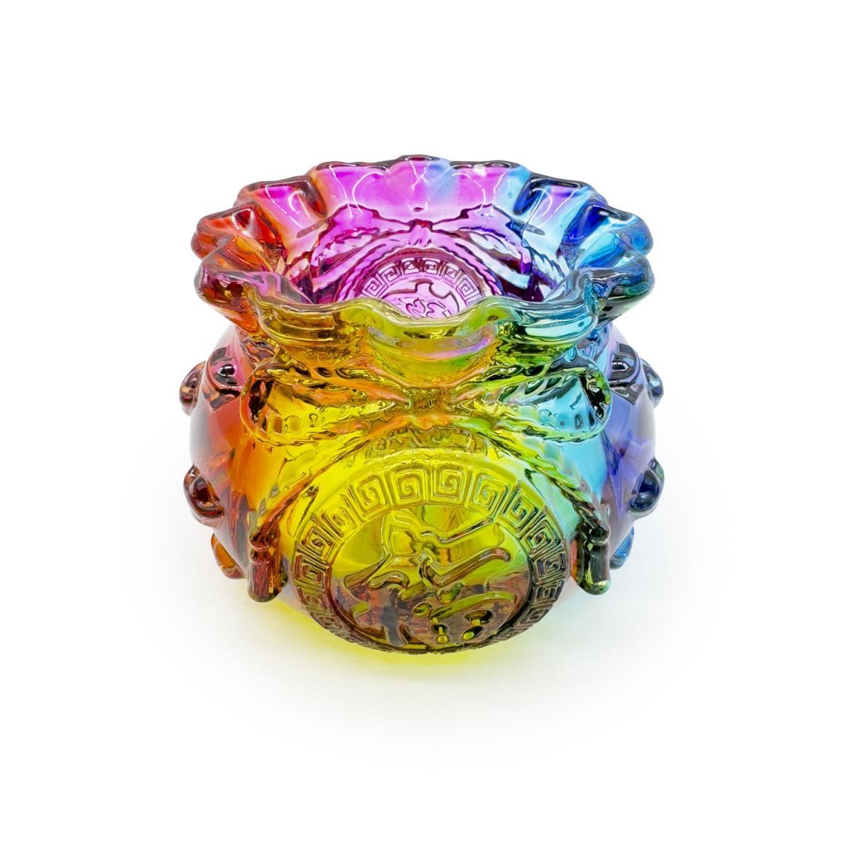 名稱 : 彩色琉璃福袋 (HIH-GLASS-BOWL-YW) 顏色 : 彩色 呎吋 : 長10cm / 高 7.5cm / 口徑 5.5cm 重量:600g 材質 : 水琉璃 適用 : 印度塔香 / 酥油爉燭 特點 : --- 顏色亮麗 --- 仿制琉璃材質,特設加厚,更上乘 --- 福袋造型,聚財納福