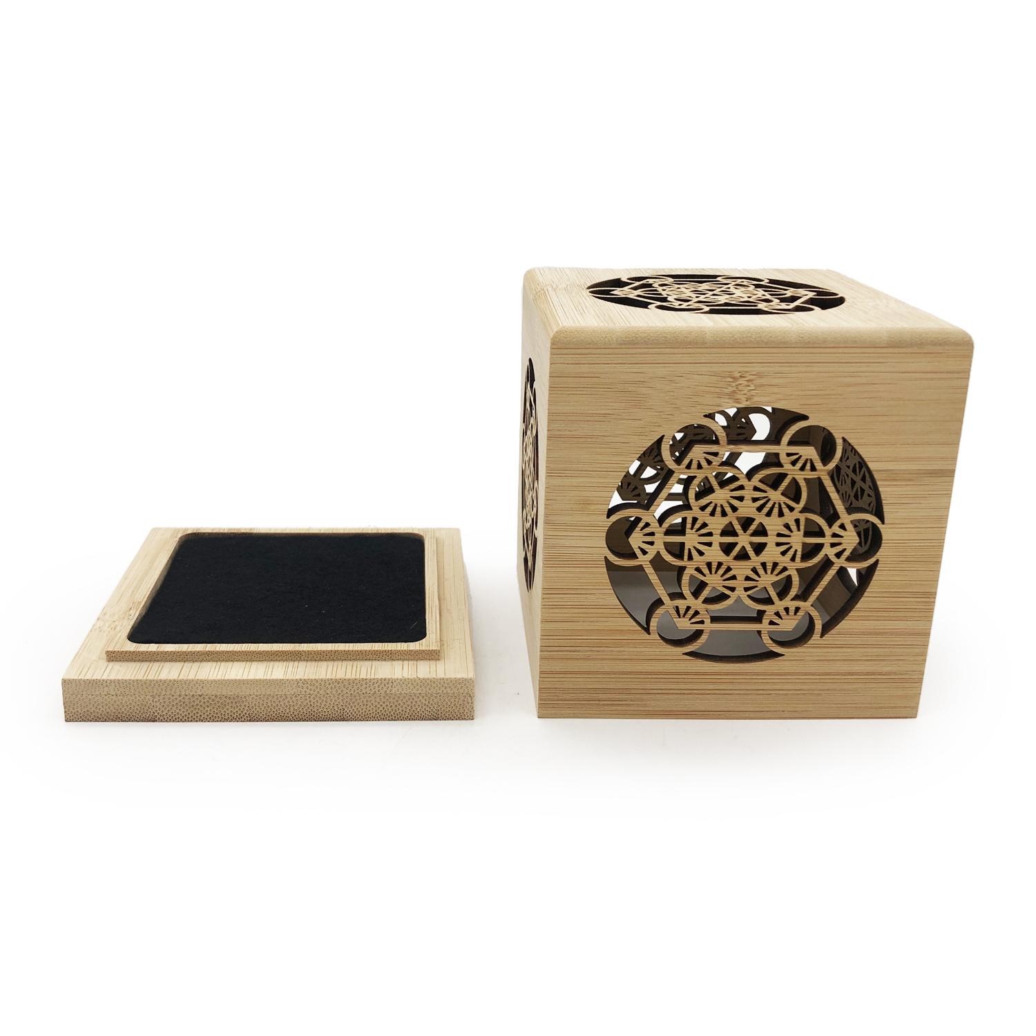 此香爐的意象、造型、材質都自帶療愈功效。生命之花是世界各地的象徵。我們的能量、地球和宇宙中的一切都交織在一個共同的重複圖案中,體現在這朵聖花的幾何形狀中。它完美的、無限的圖案代表了我們存在的線程,跨越平面和維度。立方體與地球元素相關聯並對應於根脈輪,但它們也尊重所有四個方向和基本元素。立方體創造基礎並鞏固能量,帶來穩定和安全。竹子結合了力量和靈活性,代表著和諧與平衡在我們自己的生活中如此重要。它可以彎曲但不會折斷,在惡劣的天氣中保持堅固而不僵硬——它優雅、適應性強且穩定。
