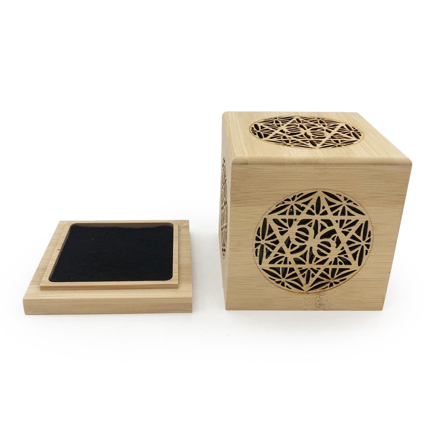 此香爐的意象、造型、材質都自帶療愈功效。生命之花是世界各地的象徵。我們的能量、地球和宇宙中的一切都交織在一個共同的重複圖案中,體現在這朵聖花的幾何形狀中。它完美的、無限的圖案代表了我們存在的線程,跨越平面和維度。立方體與地球元素相關聯並對應於根脈輪,但它們也尊重所有四個方向和基本元素。立方體創造基礎並鞏固能量,帶來穩定和安全。竹子結合了力量和靈活性,代表著和諧與平衡在我們自己的生活中如此重要。它可以彎曲但不會折斷,在惡劣的天氣中保持堅固而不僵硬——它優雅、適應性強且穩定。