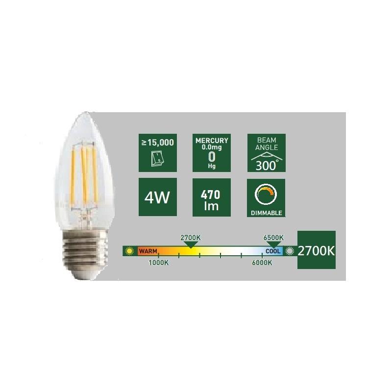 種類:可調光LED燈泡 C35椒膽 4W 2700K黃光/暖白光 E27鏍頭