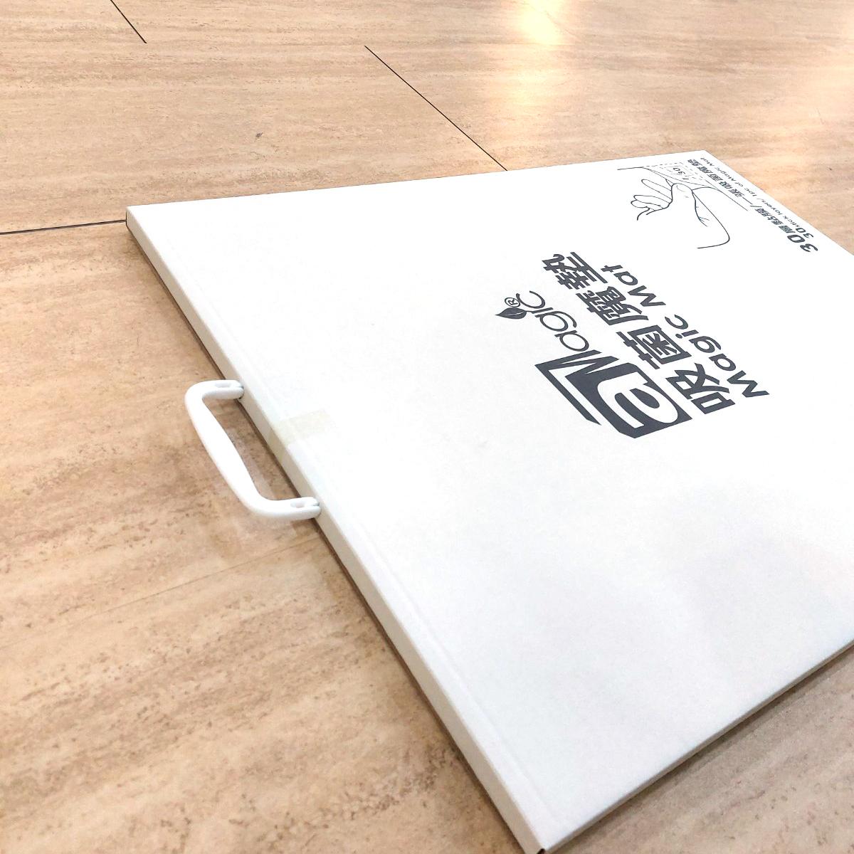 使用簡單方便,不用加上漂白水或任何消毒藥水消毒。“Magic Mat”的底部附有黏膜可把地墊直接黏到已清理好之地板上而不留痕跡,可以放心使用。