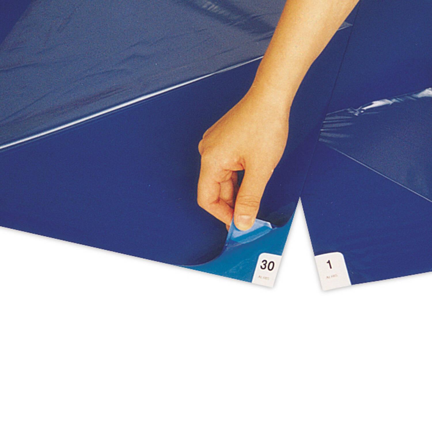 2.每層都有編號,有編號的一面向上,先將最底層的保護膜撕去,然後貼在地板上以固定吸菌魔墊位置,再將最頂層的保護膜撕去,便可使用。