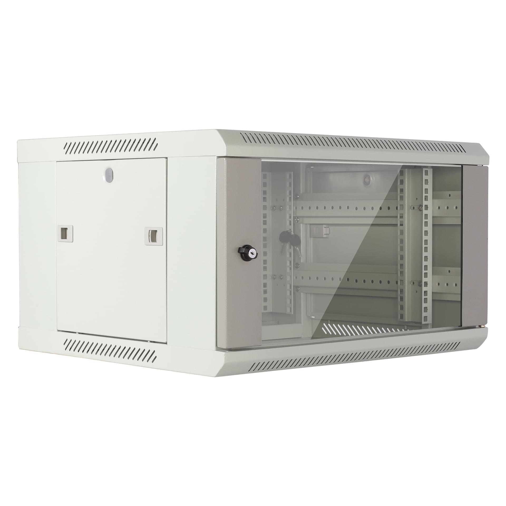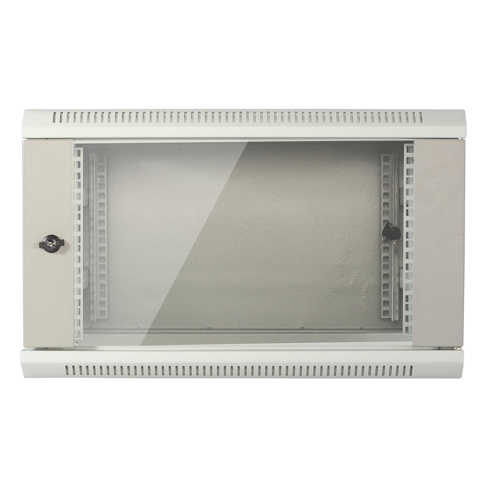 灰色6U掛牆網絡機櫃W600 X D450 X H370mm 0-Fixed Shelf 0-Fan 20-Screw 19inch標準內籠(MC186-6406G)