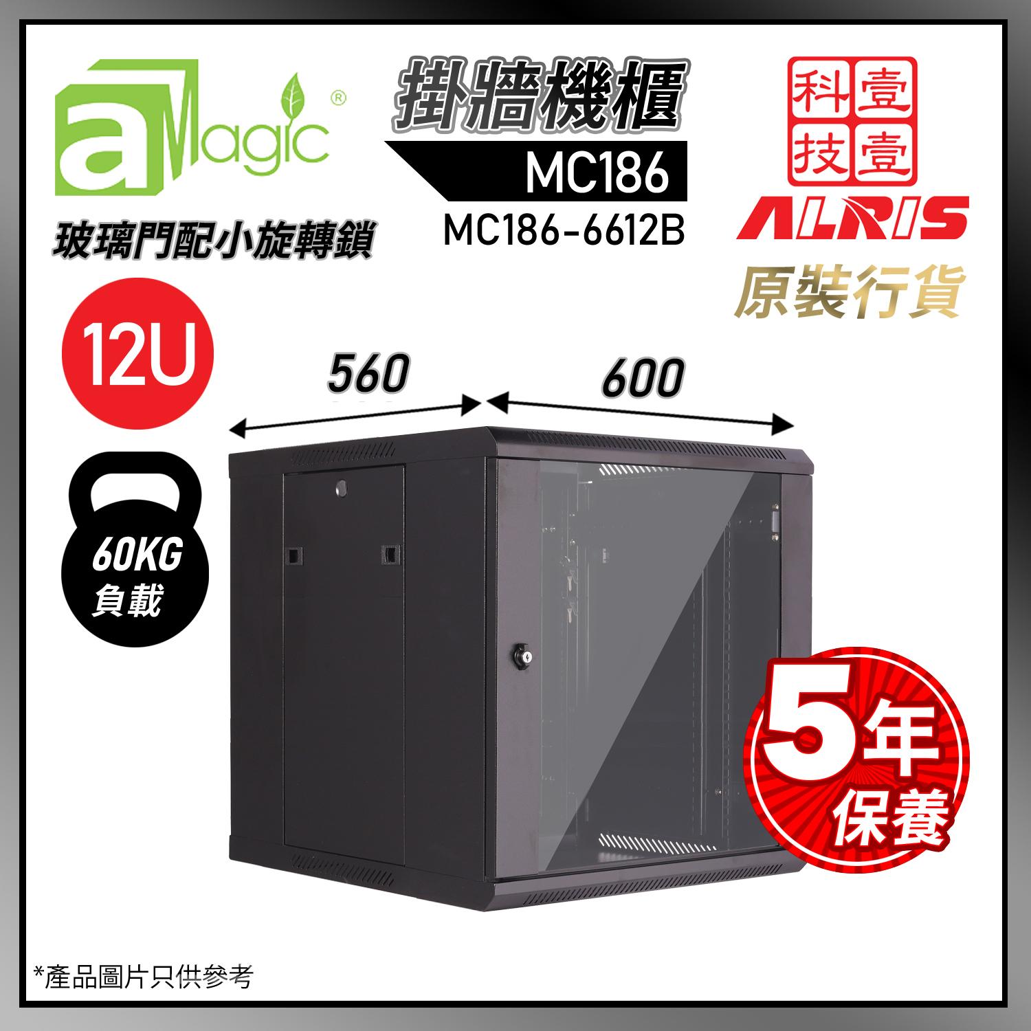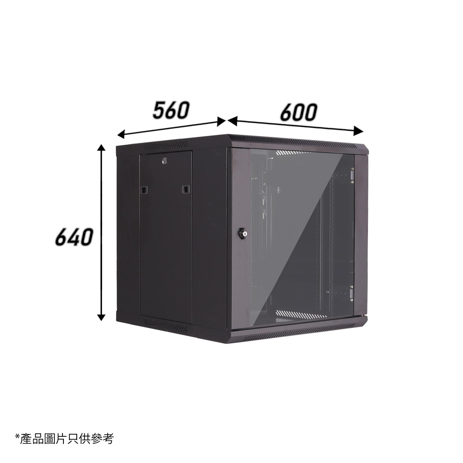 黑色12U掛牆網絡機櫃W600 X D560 X H640mm 0-Fixed Shelf 0-Fan 20-Screw 19inch標準內籠(MC186-6612B)