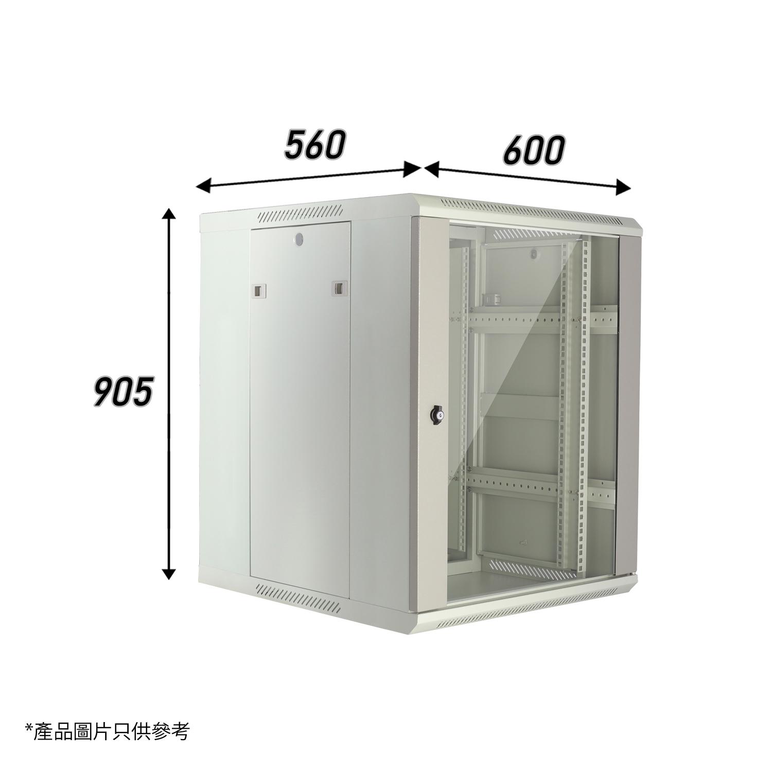 灰色18U掛牆網絡機櫃W600 X D560 X H905mm 0-Fixed Shelf 0-Fan 20-Screw 19inch標準內籠(MC186-6618G)