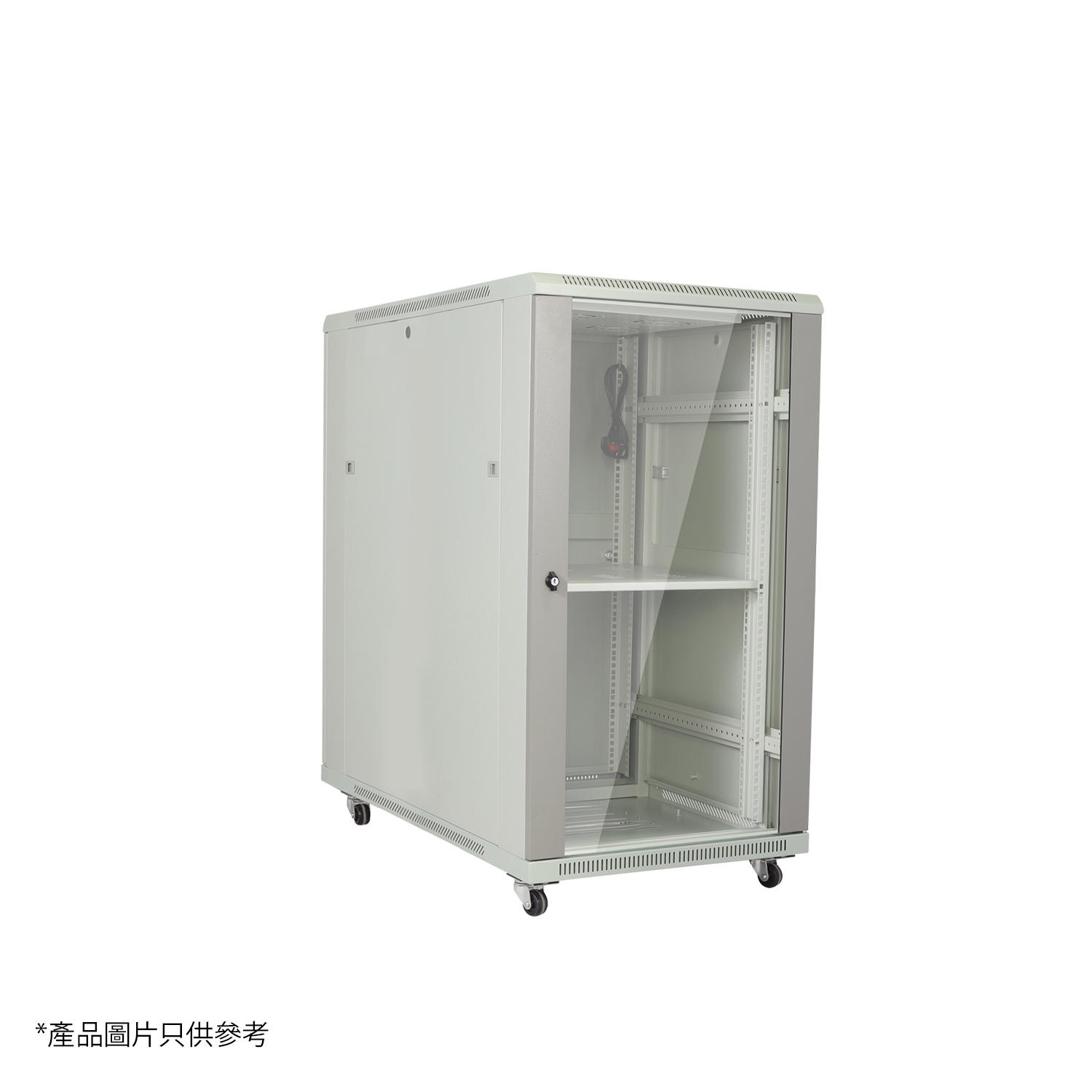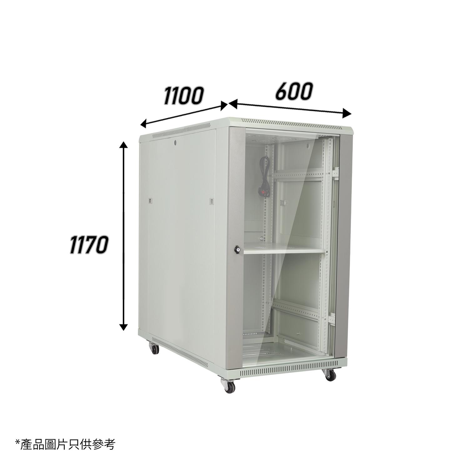 灰色22U標準網絡機櫃W600 X D1100 X H1170mm 1-Fixed Shelf 4-Fan 30-Screw 486mm(MC286-61122G)
