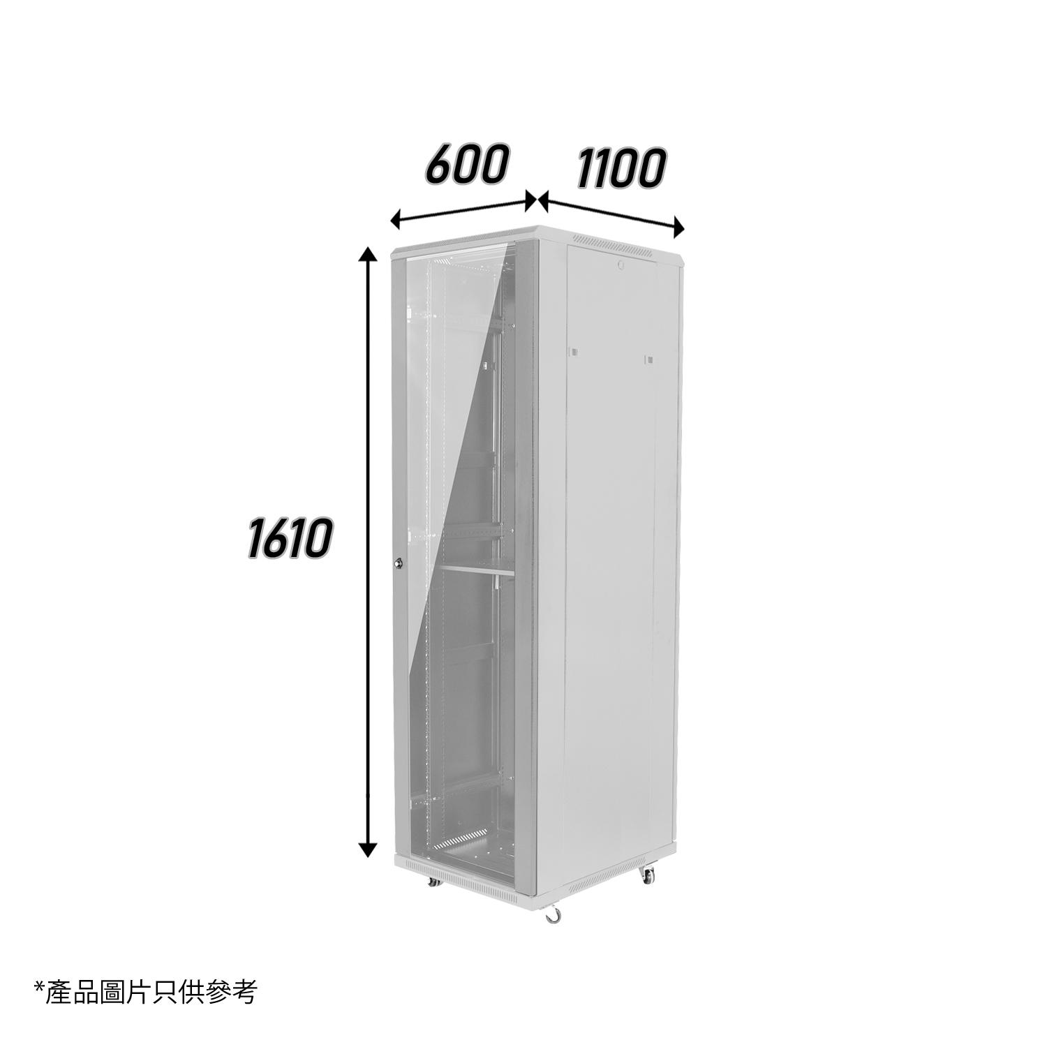 灰色32U標準網絡機櫃W600 X D1100 X H1610mm 1-Fixed Shelf 4-Fan 50-Screw 486mm(MC286-61132G)