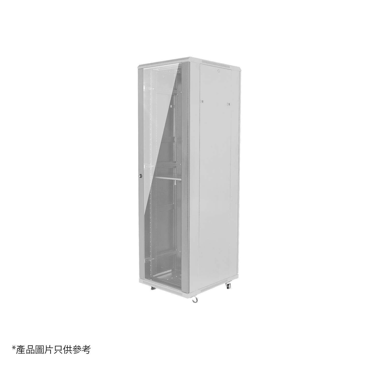 MC386 專業機櫃:600kg負載,前弧邊網孔框鋼化玻璃門配免匙大把手鎖,後標準鋼門配免匙小旋轉鎖,L形立柱厚 2.0mm。