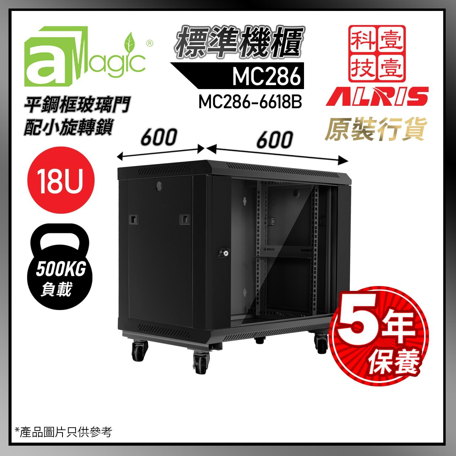 MC286 標準機櫃:500kg負載,前平鋼框鋼化玻璃門配免匙小旋轉鎖,後標準鋼門配免匙小旋轉鎖,L形立柱厚 2.0mm。