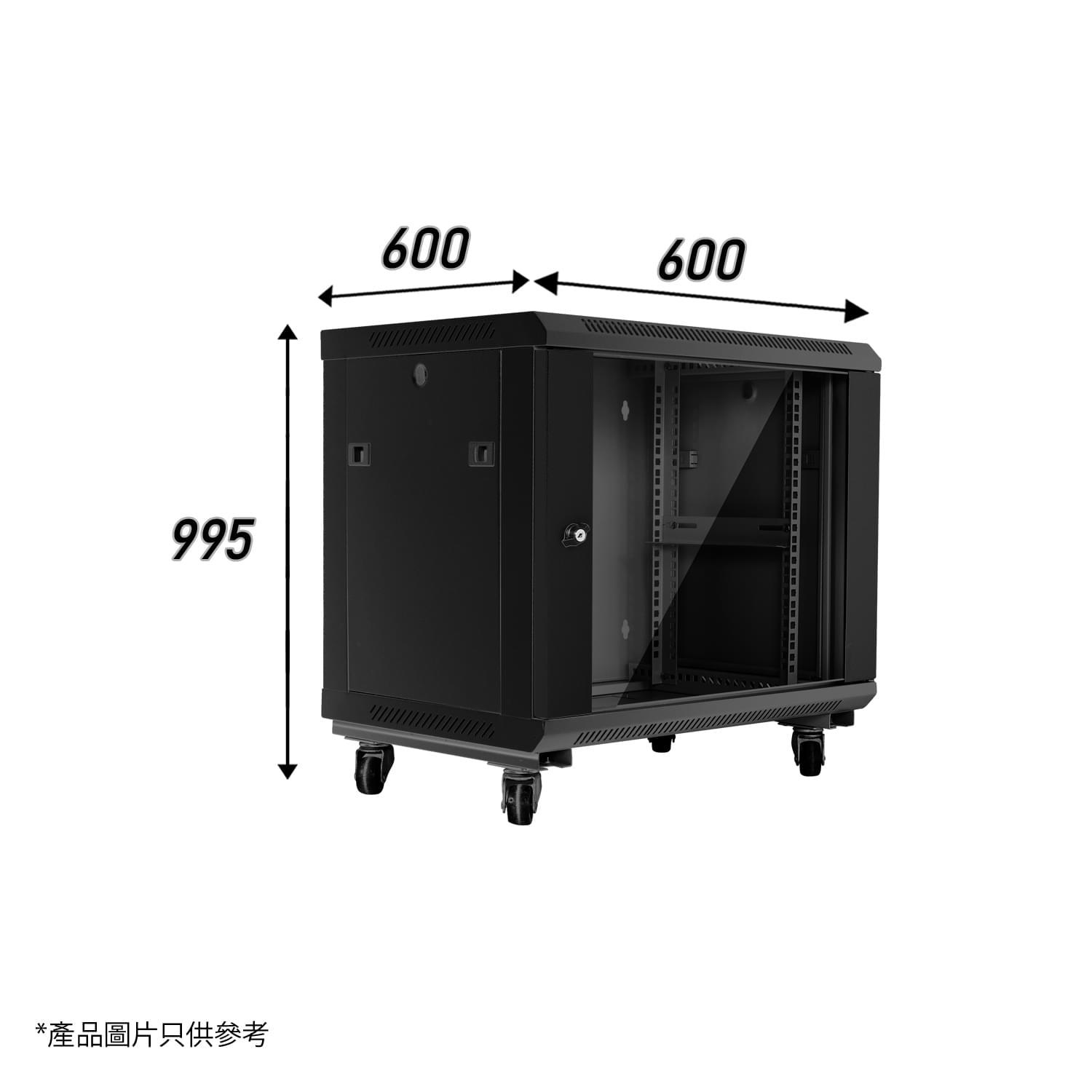 黑色18U標準網絡機櫃W600 X D600 X H995mm 1-Fixed Shelf 2-Fan 30-Screw 486mm(MC286-6618B)