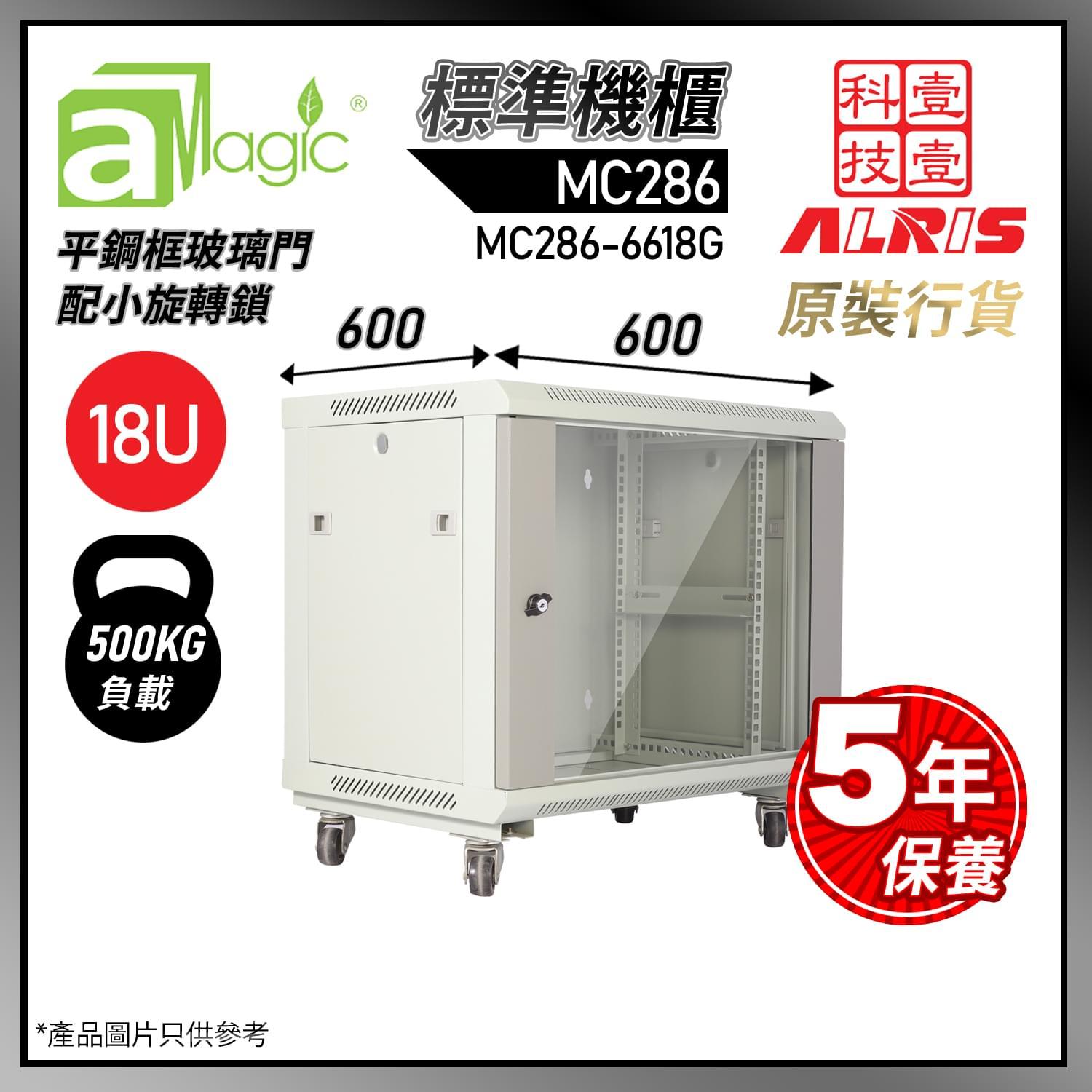 MC286 標準機櫃:500kg負載,前平鋼框鋼化玻璃門配免匙小旋轉鎖,後標準鋼門配免匙小旋轉鎖,L形立柱厚 2.0mm。